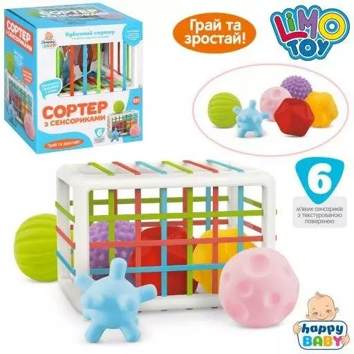 Гра HB 0021 сортер, грані з резинками, м'яч 6шт. (бризкалка), кор., 18,5-20-13см.
