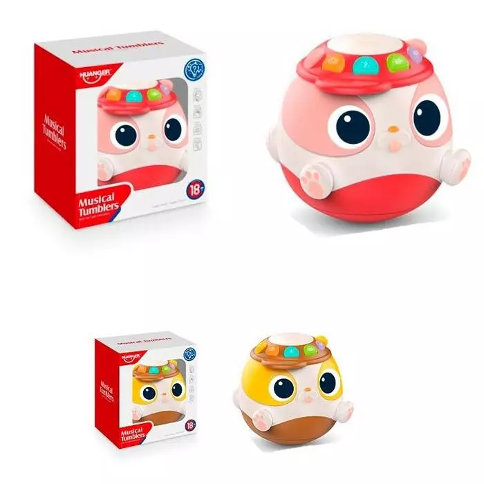 Гра HE0543-0544 неваляшка, барабан,регулятор гучності,2 кольори,муз.,світло,бат.,кор.,16-18,5-13см.