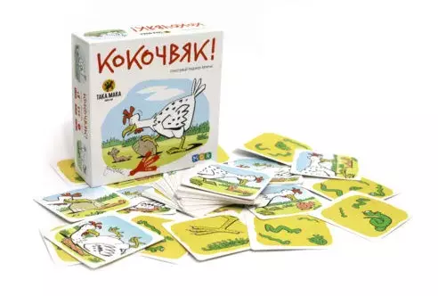 Серія ігор “Сідай і Грай”. Не витрачай час на правила! Розважайся з сім’єю та друзями! Веселі хробаки захопили ціле подвір’я і курка вже не дає собі з ними ради. Допоможи курці позбирати їх. Шукай однакових хробаків, кричи: “Кокочвяк!”. І забирай всі картки зі столу. Грай у гру «Кокочвяк» і тренуй спостережливість та швидкість реакції! В коробці Правила гри 59 Карток Гра буде цікавою дітям від шести років. Сімейна гра, яка буде одночасно цікавою батькам та дітям, вдома чи на відпочинку, адже це саме той випадок, коли діти мають великі шанси виграти у дорослих! Правила гри прості - шукай однакових хробаків, кричи: "Кокочвяк!". І забирай всі картки зі столу