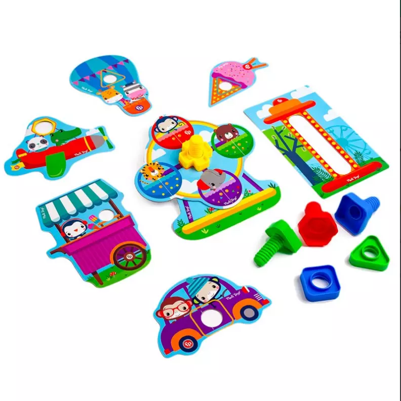 Конструюйте атракціони, вивчайте тварин і грайте із задоволенням разом з маленькими героями Fisher Price! Розкладіть фігурні картонні деталі і пориньте в веселу атмосферу парку розваг. Візьміть болтики і зберіть за допомогою них атракціони. Щоб закріпити всі деталі, прикрутіть зверху гайки. Коли малюк закінчить, він зможе катати звіряток. Гра тренує логічне мислення, пам'ять, фантазію і дрібну моторику. Комплектація: 8 двосторонніх деталей, 4 пластикових болта, 4 гайки, інструкція.