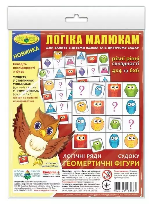 Гра "Логіка малюкам .Логічні ряди. Геометричні фігури. Судоку"пак