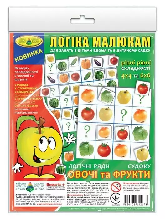 Гра "Логіка малюкам .Логічні ряди. Овочі та Фрукти. Судоку"пак