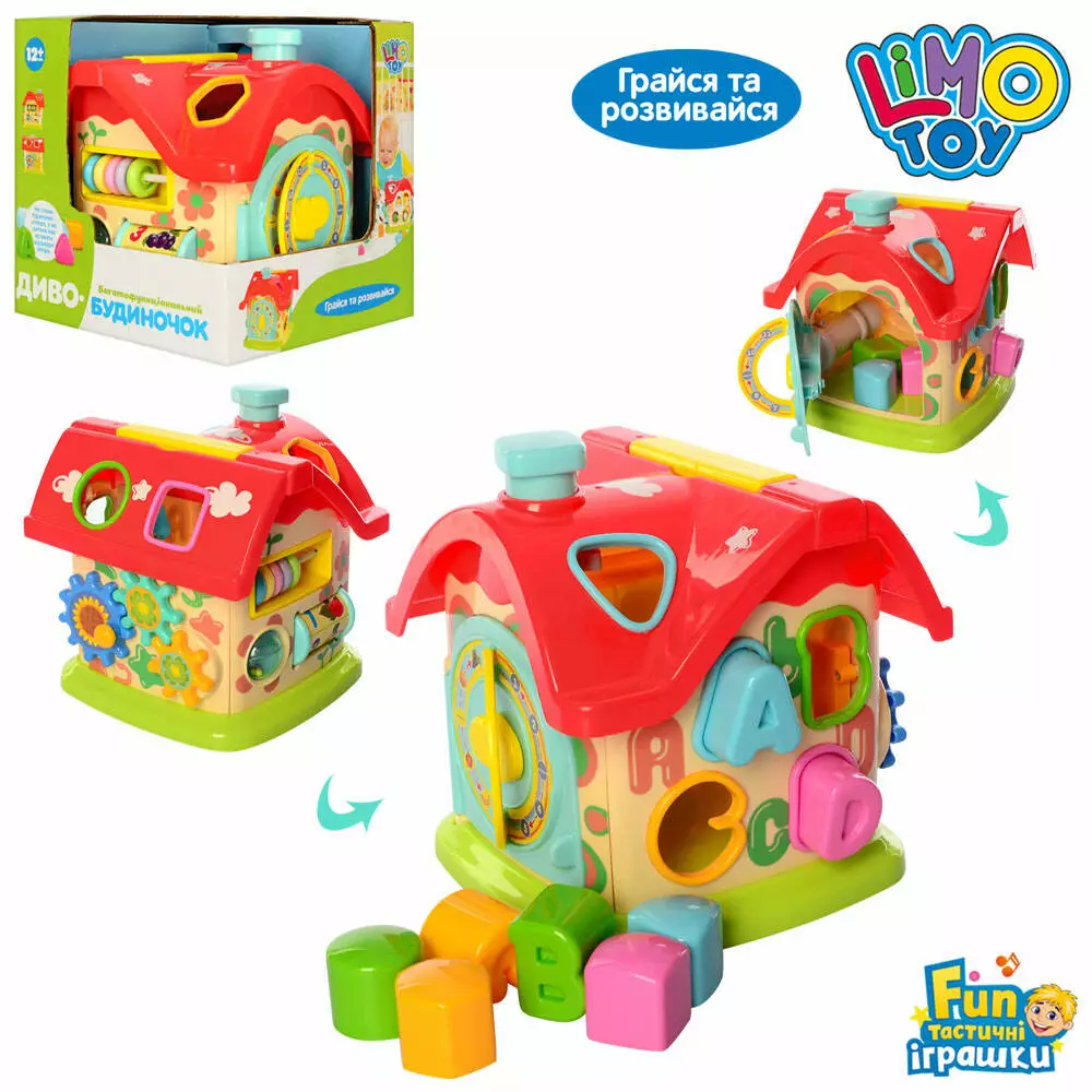 Гра M 0001 U/R будиночок-логіка, сортер, годинник, тріскачка, пискавка, кор., 21-20-19 см.