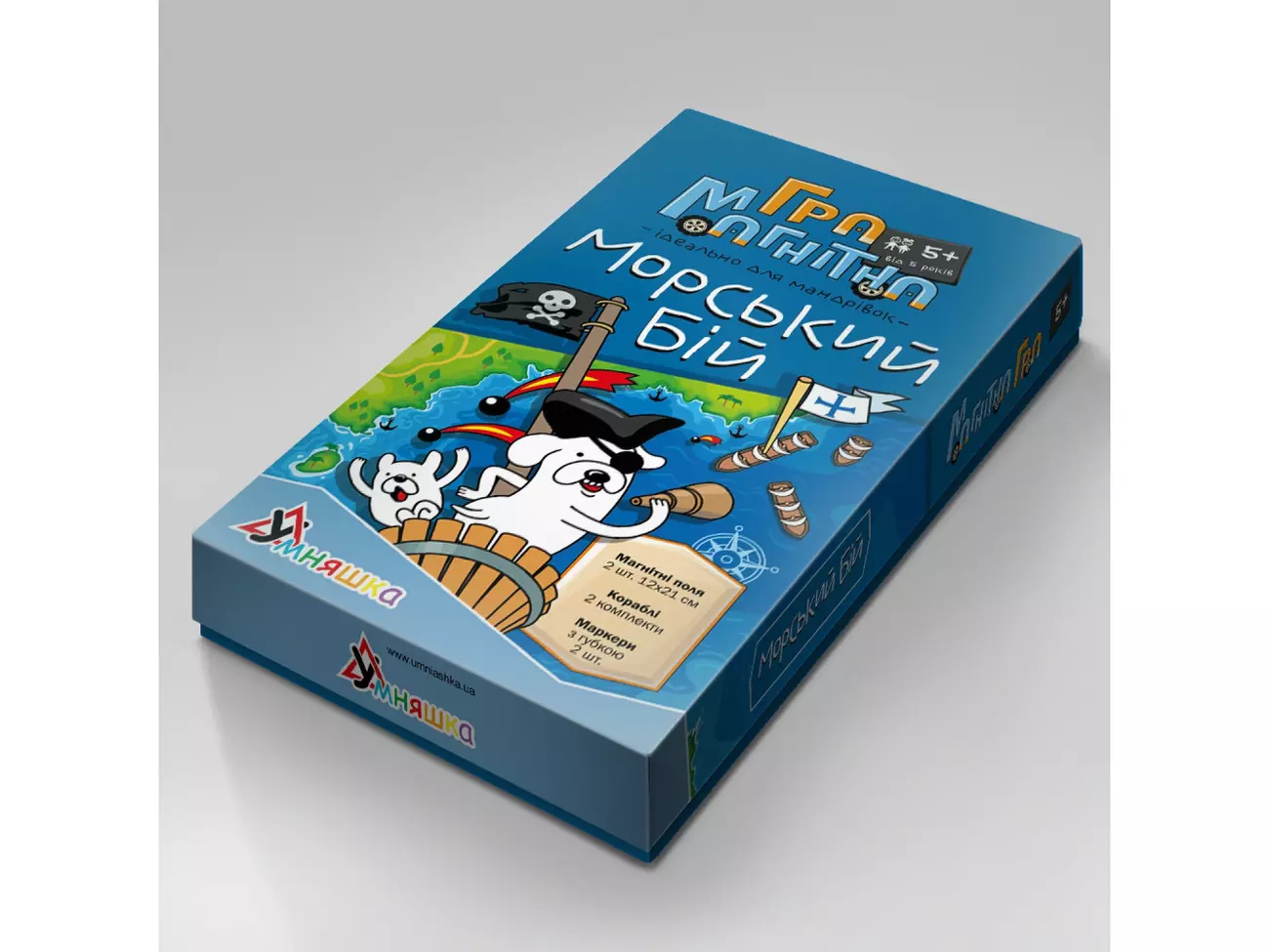 Мета гри знайти всі кораблі супротивника і потопити їх. Завдяки магнітним полю і фішкам, а також компактному розміру, гра ідеально підходить для подорожей! Склад: 2 магнітних поля 12х21см, 2 комплекти магнітних кораблів, 2 маркери з губкою. Коробка 23х12,5х2,5см. Від 5 років.