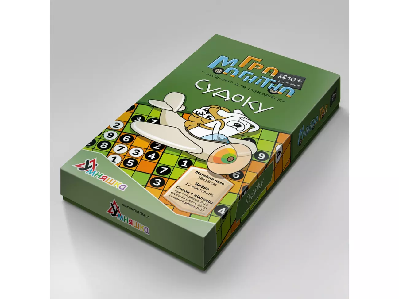 Магнітна гра "Судоку" - це головоломка для розвитку логічного мислення. У нашому наборі Ви знайдете 32 схеми від простих до складних і рішення до них. Склад: магнітне поле 18х18см, магнітні цифри-12 комлектів, схеми і рішення до них (8 простих, 16 середніх і 8 складних). Від 10 років. Коробка 23х12,5х2,5см