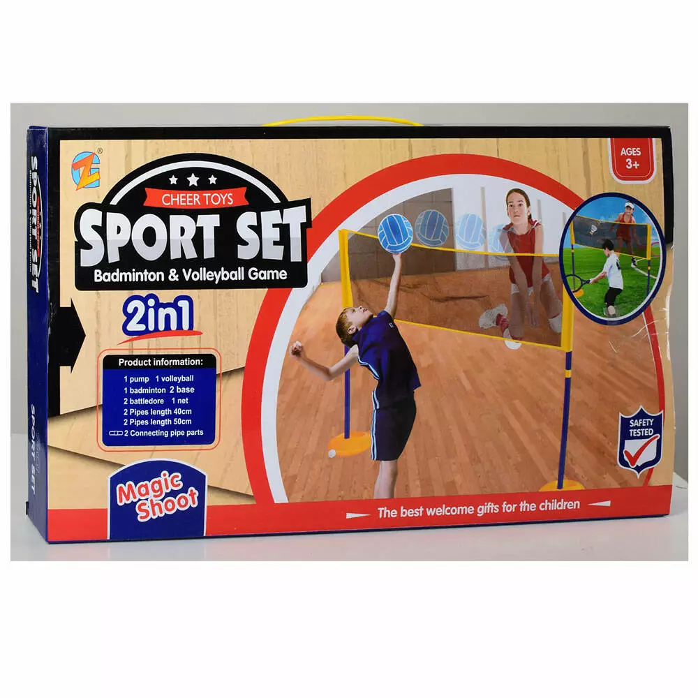 Гра MR 0142 2 в 1, волейбол, бадмінтон, сітка на стійках, ракетки 2 шт., волан, м'яч, кор.,52-29-8см