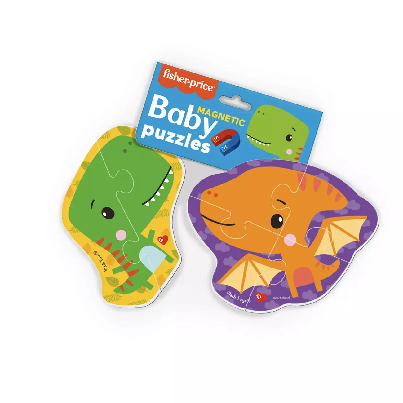 Милі персонажі "Fisher Price" запрошують малюка до гри! Складаючи пазли із зображеннями динозаврів, дитина навчиться концентрувати увагу та потренує дрібну моторику пальчиків. Усі деталі об’ємні, тож їх легко та приємно тримати дитячою ручкою. Вони надійно скріплюються між собою, тож зображення не розпадається. Завдяки основі-магніту, пазлами можна грати на холодильнику або на будь-якій іншій магнітній поверхні. Гра тренує уяву, пам’ять та дрібну моторику. Комплектація: 2 пазлові картинки.