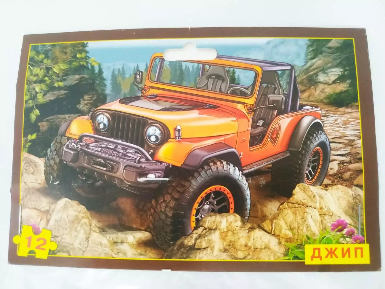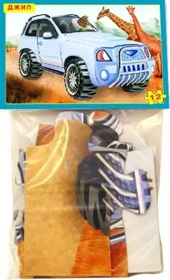 Логічна гра-Пазл для самих На величезному ігровому полі розміром 300 х 420 мм зображений Джип. Поле розрізати на 12 частин, з яких потрібно зібрати цілу картинку. ПРАВИЛА ГРИ 1. Складіть на столі картинку-пазл, нехай дитина уважно розгляне його. 2. Вийміть один (потім кілька) елементів пазла, покладіть поруч лицьовою стороною вгору. Запропонуйте дитині покласти його (їх) на місце. 3. Поступово ускладнюйте завдання. Вийміть один (потім кілька) елементів, переверніть його (їх) лицьовою стороною вниз, покладіть поруч. Запропонуйте дитині правильно покласти його (їх) на місце. 4. Розберіть пазл на окремі елементи (перемішайте елементи), запропонуйте дитині самостійно сосбрать картинку. Гра навчить складати з частин ціле; зіставляти окремі елементи за формою, кольором, розміром. Гра розвине просторову уяву, образне і логічне мислення, сприйняття, дрібну моторику рук. комплектність: 12 елементів з картону товщиною 2 мм. Кожен елемент приблизно 100 х 120 мм