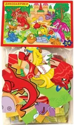 Логічна гра-Пазл для самих На величезному ігровому полі розміром 300 х 420 мм зображені Динозаврики. Поле розрізати на 12 частин, з яких потрібно зібрати цілу картинку. ПРАВИЛА ГРИ 1. Складіть на столі картинку-пазл, нехай дитина уважно розгляне його. 2. Вийміть один (потім кілька) елементів пазла, покладіть поруч лицьовою стороною вгору. Запропонуйте дитині покласти його (їх) на місце. 3. Поступово ускладнюйте завдання. Вийміть один (потім кілька) елементів, переверніть його (їх) лицьовою стороною вниз, покладіть поруч. Запропонуйте дитині правильно покласти його (їх) на місце. 4. Розберіть пазл на окремі елементи (перемішайте елементи), запропонуйте дитині самостійно сосбрать картинку. Гра навчить складати з частин ціле; зіставляти окремі елементи за формою, кольором, розміром. Гра розвине просторову уяву, образне і логічне мислення, сприйняття, дрібну моторику рук. комплектність: 24 елемента з картону товщиною 2 мм. Кожен елемент приблизно 70 х 100 мм