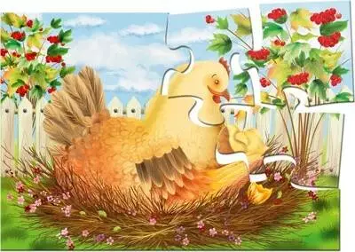 Логічна гра-Пазл для самих На величезному ігровому полі розміром 300 х 420 мм зображений сюжет з казки Курочка Ряба. Поле розрізати на 12 частин, з яких потрібно зібрати цілу картинку. ПРАВИЛА ГРИ 1. Складіть на столі картинку-пазл, нехай дитина уважно розгляне його. 2. Вийміть один (потім кілька) елементів пазла, покладіть поруч лицьовою стороною вгору. Запропонуйте дитині покласти його (їх) на місце. 3. Поступово ускладнюйте завдання. Вийміть один (потім кілька) елементів, переверніть його (їх) лицьовою стороною вниз, покладіть поруч. Запропонуйте дитині правильно покласти його (їх) на місце. 4. Розберіть пазл на окремі елементи (перемішайте елементи), запропонуйте дитині самостійно сосбрать картинку. Гра навчить складати з частин ціле; зіставляти окремі елементи за формою, кольором, розміром. Гра розвине просторову уяву, образне і логічне мислення, сприйняття, дрібну моторику рук. комплектність: 12 елементів з картону товщиною 2 мм. Кожен елемент приблизно 100 х 120 мм