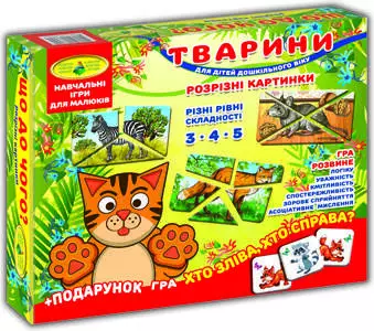 32 картки тварин - 96 елементів (з картону 2 мм)