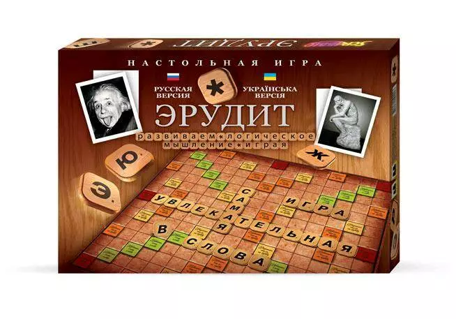Кількість гравців: 2-4 людини. У наборі: ігрове поле; 110 фішок-букв; кубик; мішечок для фішок; правила гри. У цієї популярної на весь світ настільної гри є безліч назв - Скрабл, Ерудит, Словодел. Але незалежно від назви вона зможе подарувати Вам безліч захоплюючих хвилин в сімейному колі або дружній компанії. Настільна гра «Ерудит» як для дітей, так і для дорослих. Вона допоможе Вам поповнити свій словниковий запас, розширити кругозір, підвищити інтелектуальний рівень і кмітливість. На ігровому полі розташовуються 225 квадратів, на які гравцям належить викладати літери. На початку кожен отримує 7 випадкових букв, з яких по вертикалі або горизонталі викладаються слова. Заповнюйте клітини з найбільшою кількістю очок, щоб виграти.