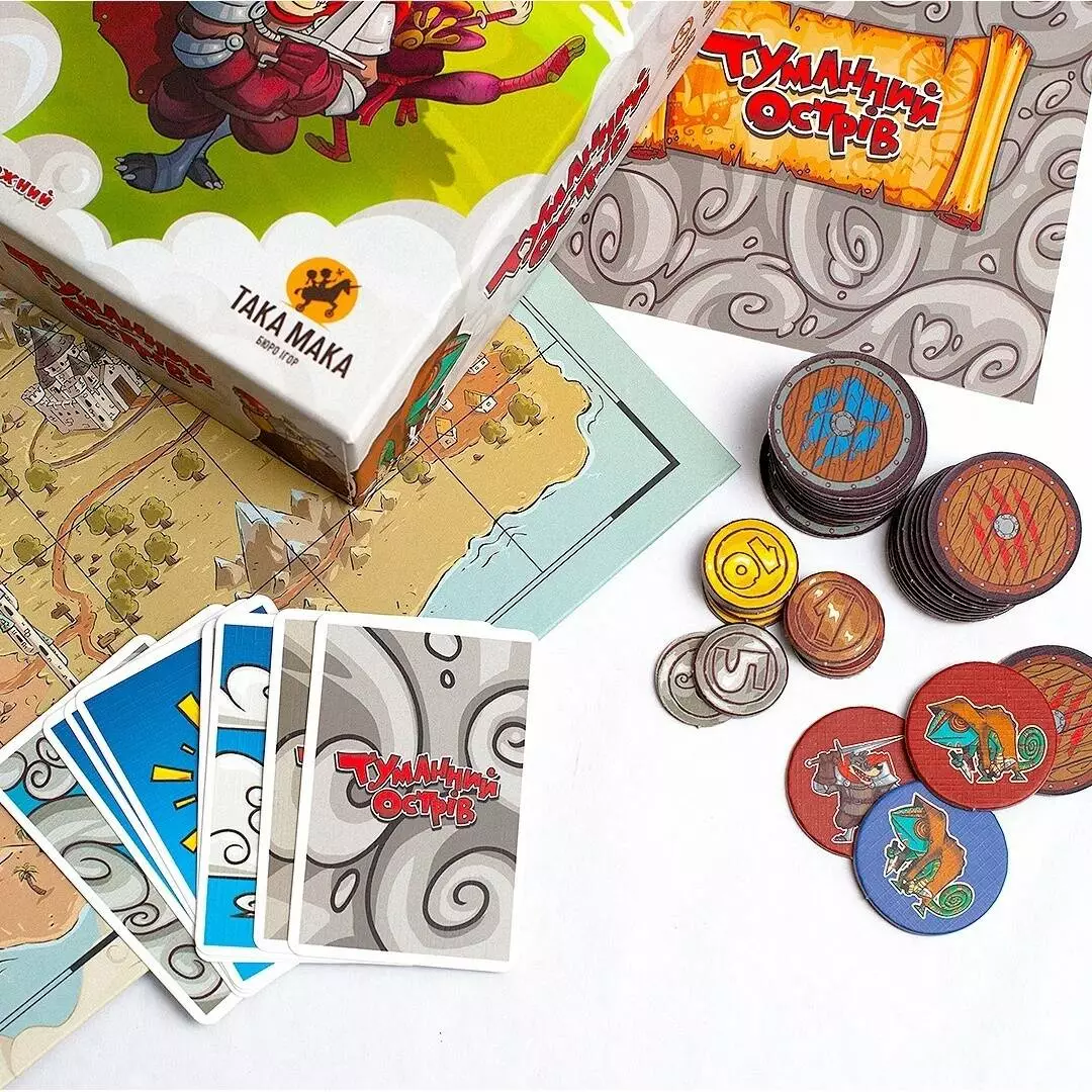 Авторська стратегічна настільна гра на основі механіки хрестиків-нуликів чи рендзю. “Туманний острів” має декілька варіантів гри, які дають можливість бавитись як дітям, так і дорослим, як початківцям, так і досвідченим гравцям. Як і шахи, ця гра розвиває стратегічне мислення, увагу та пам’ять, але разом з тим є веселою і азартною розвагою. Фантастичний світ “Туманного Острова” наповнений пригодами, інтригами та несподіванками! Ще ніколи боротьба за владу не була такою цікавою і азартною одночасно. В коробці Правила гри Ігрове поле Жетони Монети Картки погоди Планшети мороку Стратегічна карта та цікаві персонажі для дуельної битви