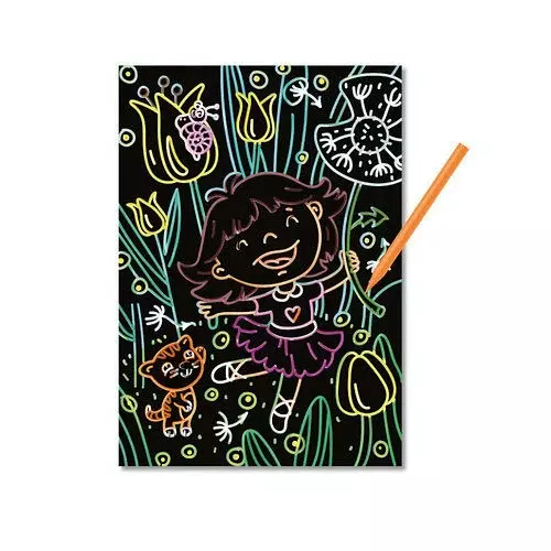Дитяча гравюра - це дуже цікавий і захопливий процес! Щоб зробити красиву гравюру, дитині необхідно докласти максимум зусиль - бути уважним, старанним і точним у своїх діях. кожен рух штриха знімає чорний шар фарби та проявляє кольорове зображення. Для початку покажіть дитині як потрібно тримати пластикову ручку і виконувати рухи, а потім насолоджуйтеся виконаним шедевром разом. Комплектація набору: - 1 картка; - штихель. Розмір кожної гравюри - 21 ? 29 см