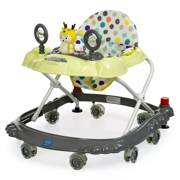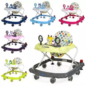 Якщо дитина вже впевнено сидить і може повзати, настав час придбати дитячі ходунки. З їх допомогою малюк зможе перебувати у вертикальному положенні та самостійно досліджувати світ. Дитячі ходунки M 3168 приваблюють яскравим дизайном, продуманою конструкцією та доступною ціною. Модель має 8 коліс, що забезпечують хорошу маневреність та легкість пересування. Висоту сидіння можна регулювати в 3 положеннях зростання малюка, щоб йому було максимально зручно робити перші кроки. Є ігрова панель зі звуковими та світловими ефектами, яка дозволить урізноманітнити дозвілля дитини та сприятиме розвитку. Ходунки будуть допомагати малюкові в його перші кроки. Малюк буде відчувати себе більш впевнено і швидше навчиться ходити. Габаритний розмір: висота max - 53см, ширина - 56см, глибина - 66см. Висота регулюється - 3 положення. Висота до столика (max) - 39см, (mi) - 36см. Висота зі спинкою (max) - 53см. Висота до сидіння (max) - 22см. Знімна панель на столику (2 затиску) Музика - 2 мелодії, світло. Працює від 2-х батарейок АА (у комплект не входять). Тварина-пищалка, брязкальце 2шт. Стопори - 2шт. Колеса - 7шт (діам. 6 см).