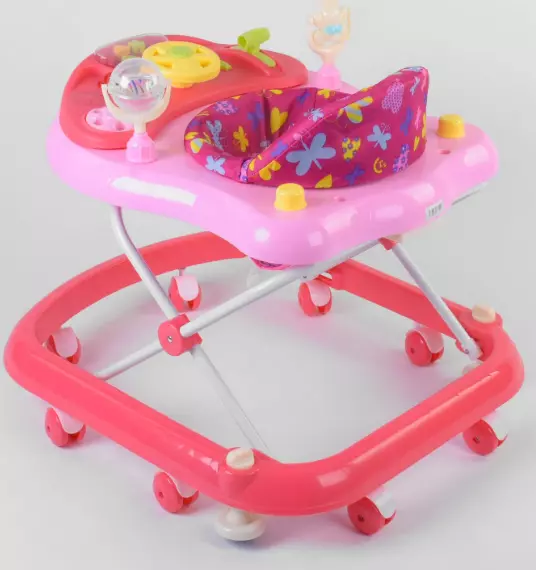 Дитячі ходунки JOY TS-05058 із музичною ігровою панеллю призначені для малюків 6-18 місяців. Ходунки має 3 положення регулювання по висоті та легко складаються для зручного зберігання та подорожей. М'який бампер захищає меблі від пошкоджень під час переміщення ходунків. Ходунки оснащені 8 парами здвоєних пластикових коліс, обладнані гальмом (фіксатором положення) і зручною ручкою. Знімна інтерактивна панель включає рухливі ігрові елементи і музичні кнопки. У центрі панелі кермо яке можна крутити. Поруч коробка передач і тріскачка. При натисканні на кнопки звучать веселі мелодії пісні. Характеристики ходунків TS-05058 - Сидіння знімається для прання. - Діаметр коліс: d=5 див. - Мінімальна висота від підлоги: 40 див. - максимальна висота від підлоги: 43 см. - Музична панель працює від 2-х батарейок типу "АА" (не входять до комплекту). - Матеріал: пластик, метал, тканина.