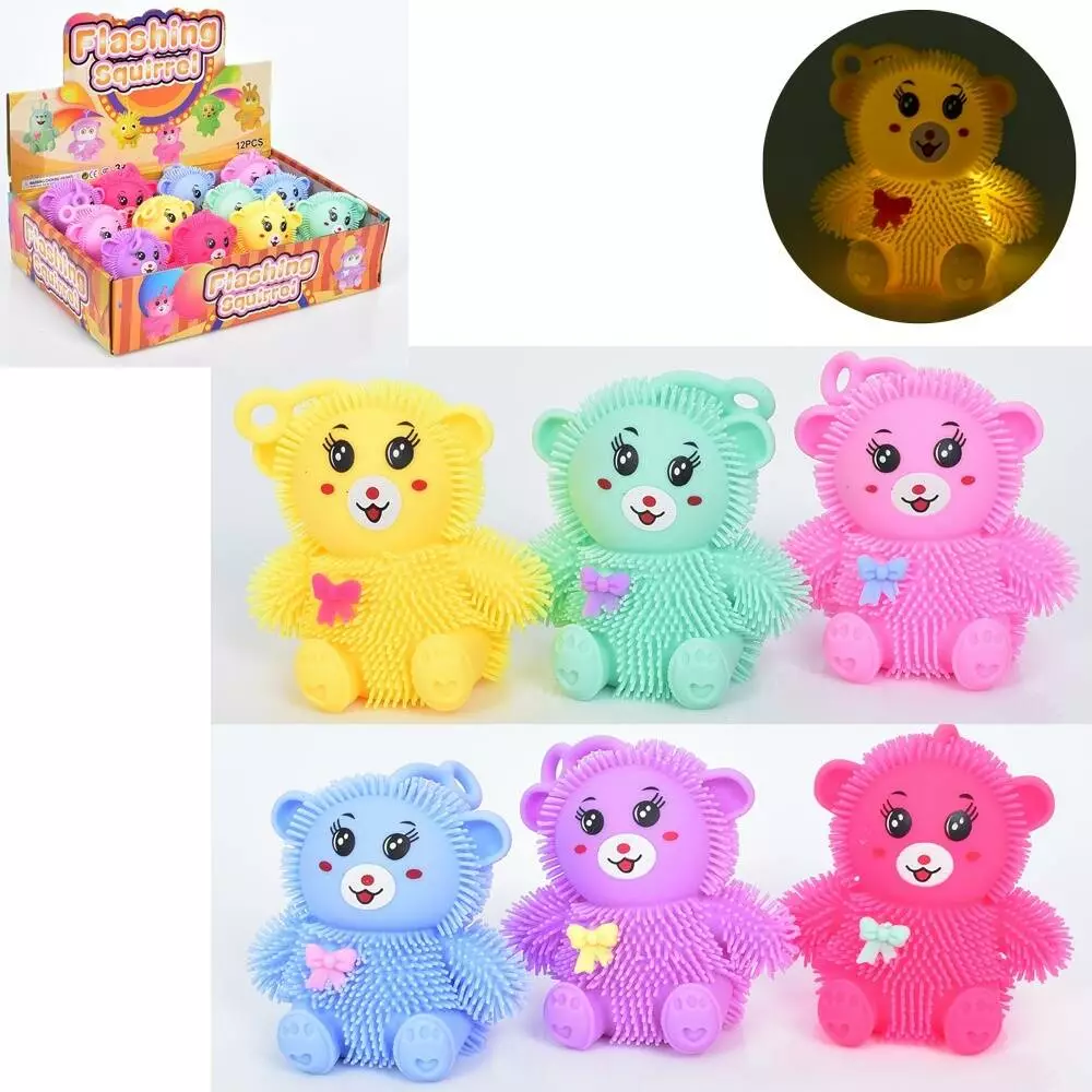 Ї-їжачок MS 3687 антистрес, 4 кольори, світло, бат. (табл.), 12 шт. в диспл., 31-21-7,5 см.
