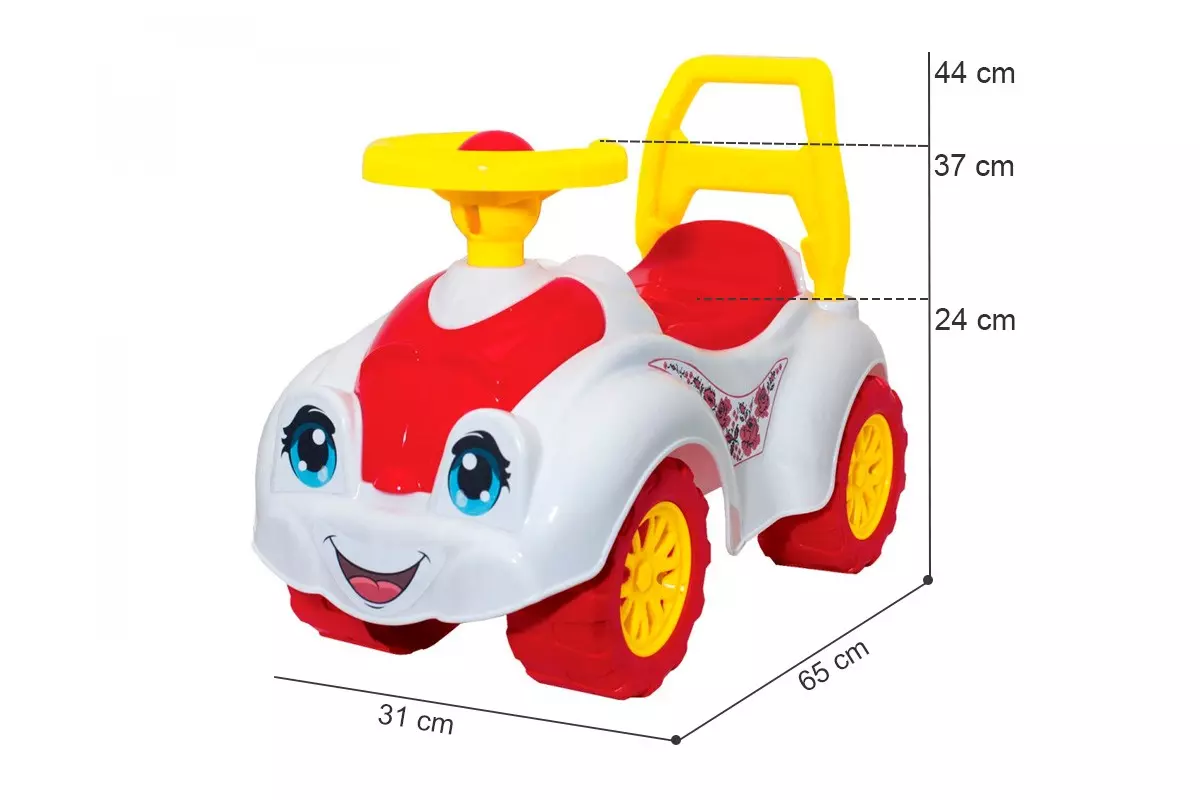 Іграшка «Автомобіль для прогулянок ТехноК» - це стильний дизайн у поєднанні із зручністю та функціональністю . Дітям також сподобаються яскраві кольори та цікаві наклейки . Функціонал іграшкового автомобіля, як у справжнього: під капотом можна заглянути в відсік для ремонту. І для покупок теж знайдеться місце – є багажник та великий відсік під сидінням. Зручна спинкапідтримує дитину під час катання Імітація вихлопної труби забезпечує стійкість автомобіля від перекидання. На великих міцних колесах автомобіль має високу прохідність різних дорожніх покриттях. Іграшка "Автомобіль для прогулянок ТехноК" неодмінно стане найкращим другом для Ваших малюків. Максимальне навантаження – 20 кг. Для дітей віком від 1 року. Вага 2340 г габаритні розміри 65 ? 44 ? 31 см Розміри упаковки 82 ? 65 ? 32 см