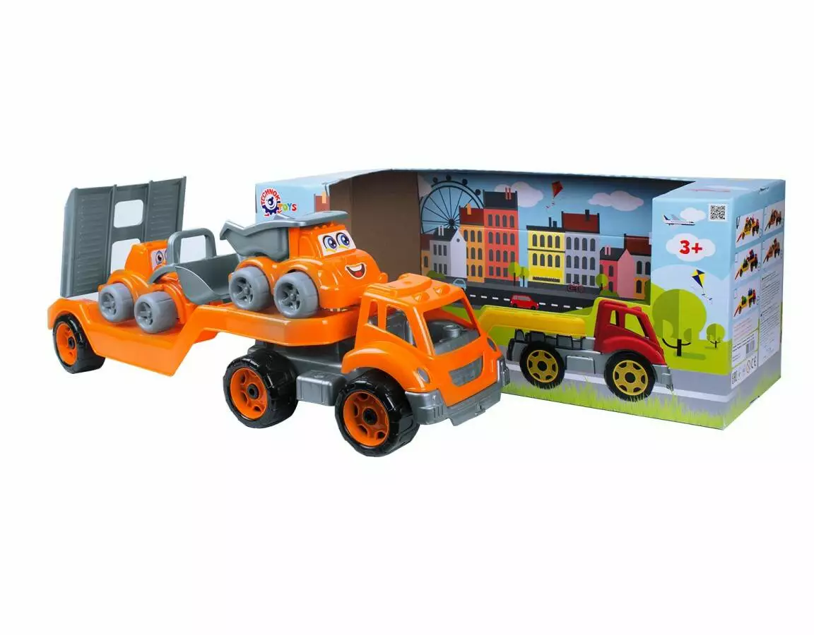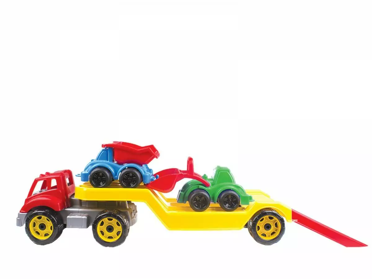 Автовоз - це спеціалізований вантажний автомобіль, спеціально розроблений для перевезення автомобілів. Даний автовоз перевозить будівельну техніку. Дитині буде цікаво гратися цією іграшкою в пісочниці. За допомогою автовоза можна доставляти машинки на "будмайданчики" для будівництва різних пісочних конструкцій. Машинки з набору будтехніки легко заїжджають на причіп. Граючи з цим набором, дитина розвиває логіку і фантазію і набагато швидше запам'ятовує кольори.