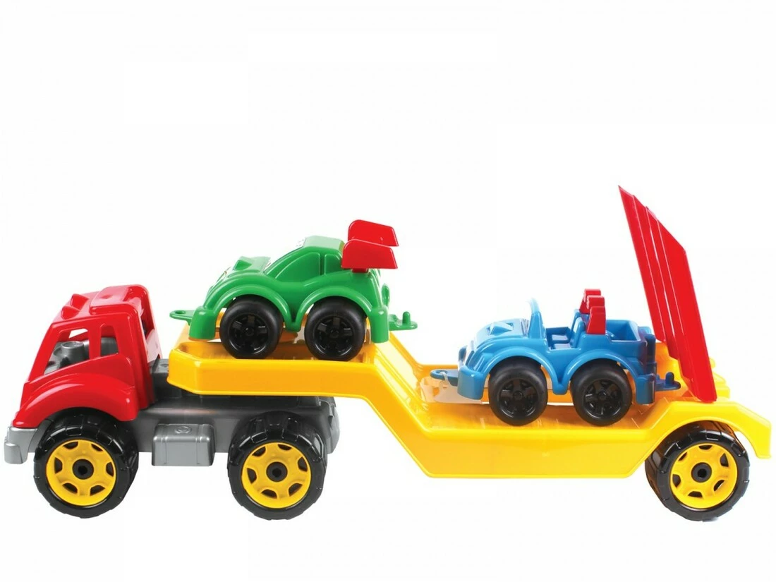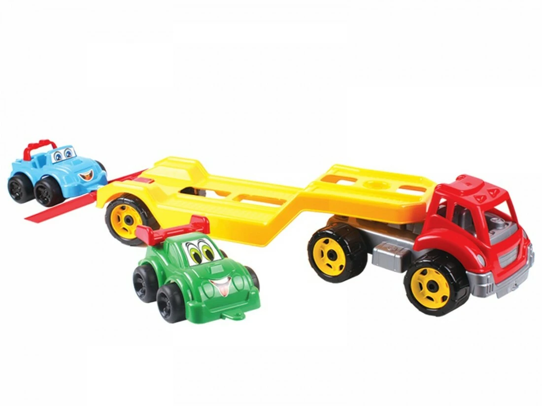 Іграшка «Автовоз з набором машинок ТехноК» 3909 являє собою досить великий (63 см.) Тягач з причепом для перевезення техніки на якому розташований відкритий джип і легкова машина. У причепа відкидається трап для завантаження автомобілів своїм ходом. Іграшка виглядає красиво і солідно. Виріб виготовлено з міцного пластику, відповідає санітарно-технічним нормам і стандартам якості України.