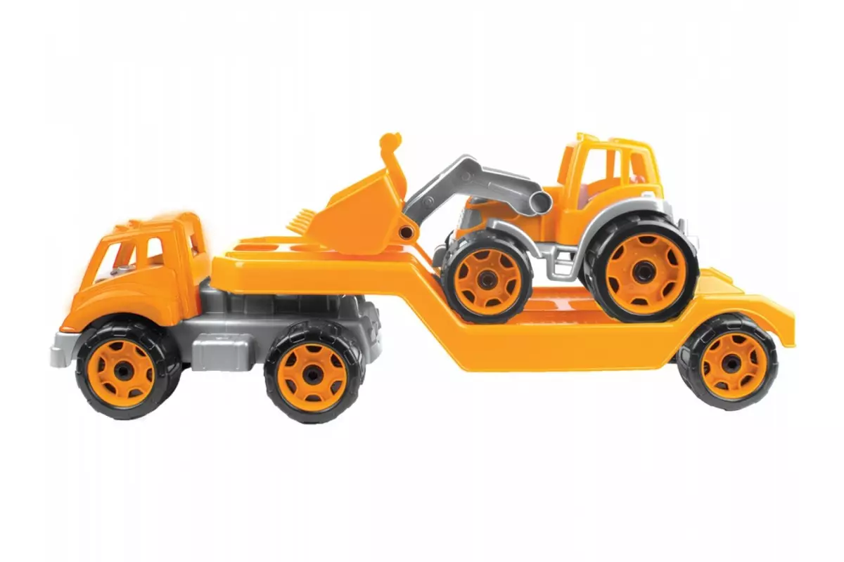 Вага 1255 г Габаритні розміри 64 ? 21 ? 24 см Автовоз - це спеціалізований вантажний автомобіль, спеціально розроблений для перевезення автомобілів. Даний автовоз перевозить трактори. Дитині буде цікаво гратися цією іграшкою в пісочниці. За допомогою автовоза можна доставляти трактори на "будмайданчики" для будівництва різних пісочних конструкцій. Трактори легко заїжджають на причіп. Граючи з цим набором, дитина розвиває логіку і фантазію і набагато швидше запам'ятовує кольори.