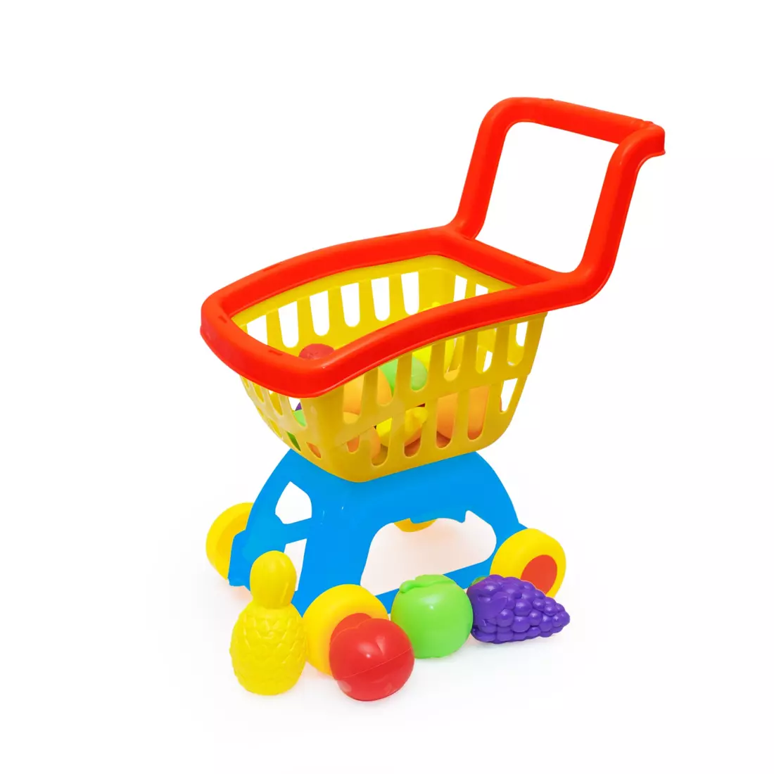 Візок із фруктами – це іграшкова копія дорослого візка із супермаркету, який дитина може використовувати для покупок у магазині разом з батьками або імітувати гру в магазин вдома. Незначна вага і хороші ходові якості не викликають труднощів із керуванням, тому дитина легко впорається з цим завданням. особливості: - іграшка виготовлена із міцного, екологічно чистого пластику, що витримує значні навантаження; - якісний пластик не вигоряє та не деформується на сонці; - Розміри: 47 * 43 * 24 см; - у комплект входять 15 різних фруктів, які допоможуть дітям у вивченні їх назв, кольорів та розмірів.