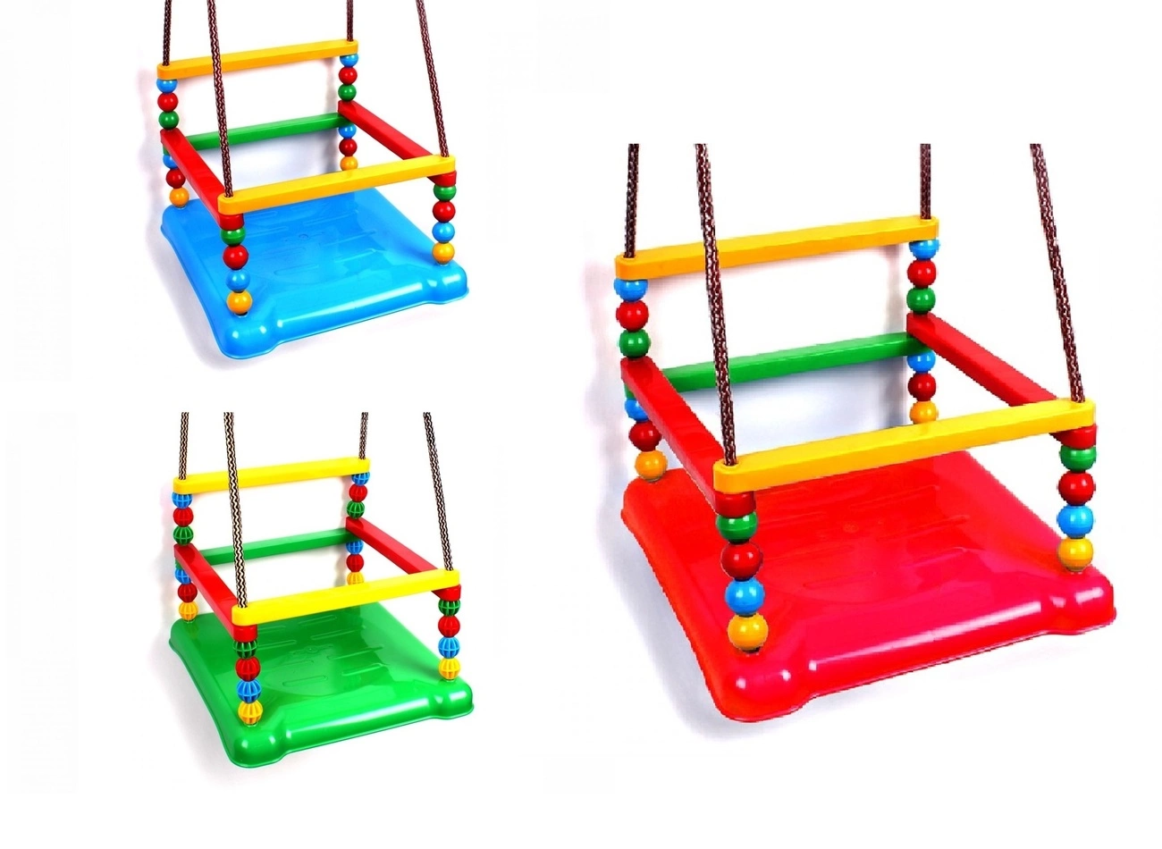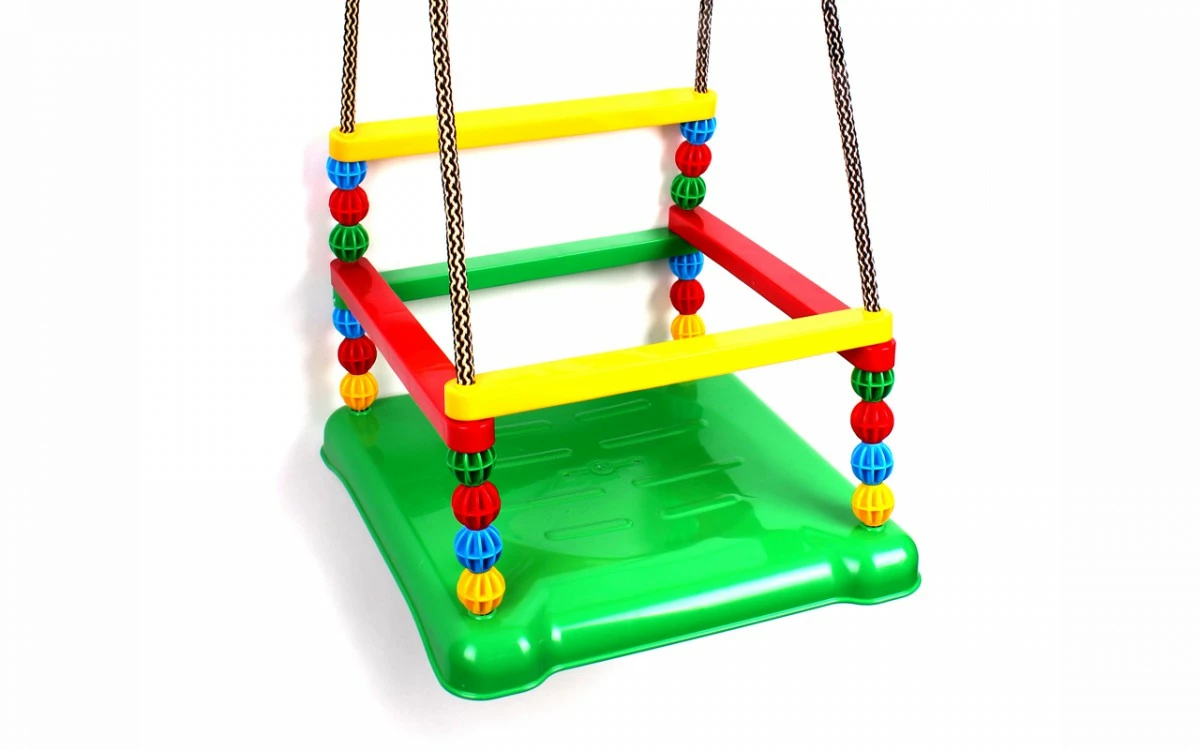 Переносна дитяча гойдалка. Можна використовувати як в приміщенні, так і на вулиці. Компактна, легка, складається в абсолютно мізерний обсяг і легко перевозяться з собою під час поїздок до родичів або на відпочинок. Гойдалка має яскраві соковиті кольори які інтуїтивно подобаються маленьким дітям. Створіть дитині дитячий майданчик не виходячи з дому. Виріб виконаний з пластика
