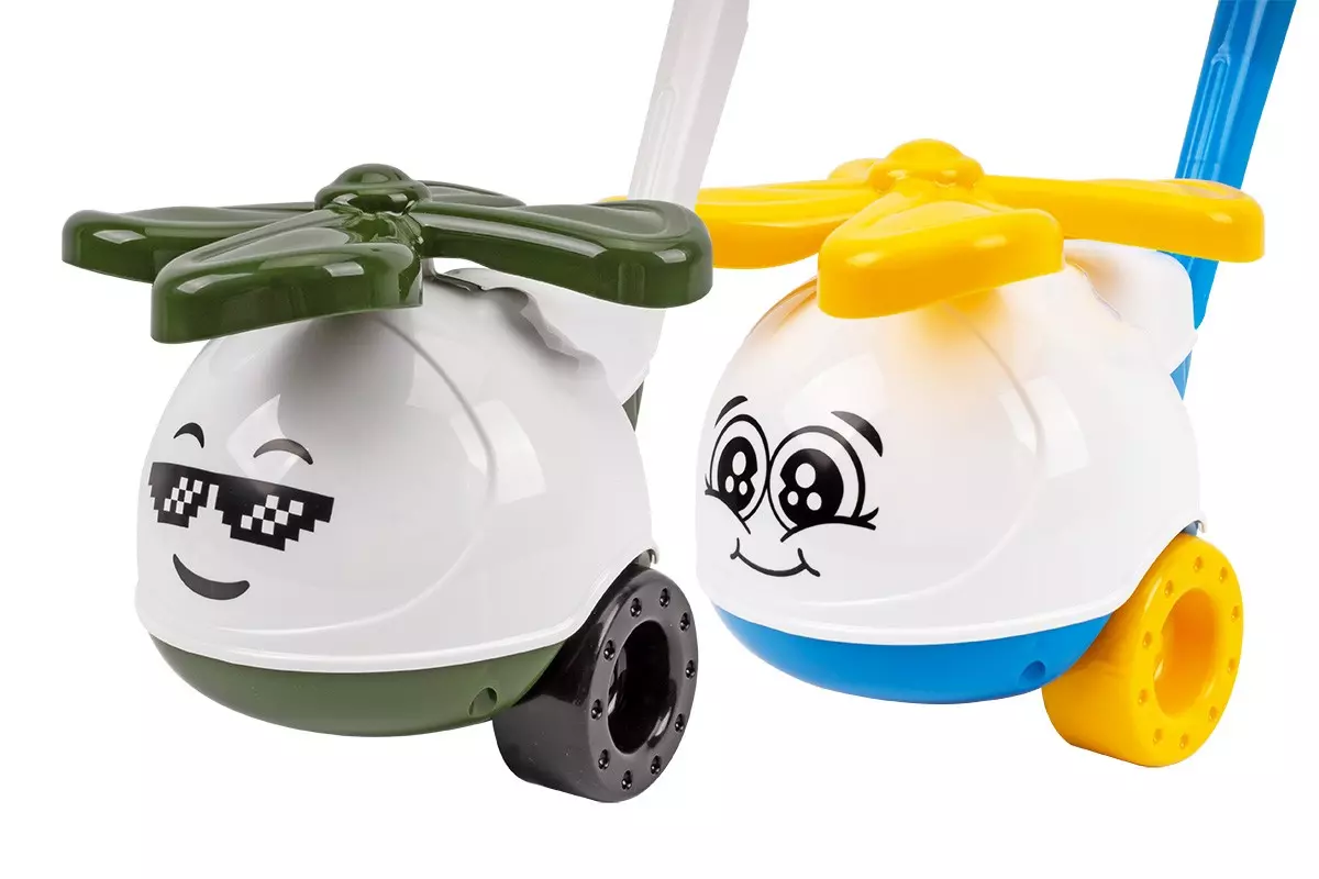 Каталка гвинтокрил від ТехноК поєднує у собі яскравий дизайн, емоційну виразність та інтерактивні можливості. Кольорова гама відмінно підійде, як для хлопчиків, так і для дівчаток. Це буде точно вибір маленьких патріотів. Каталка оснащена довгою ручкою (при потребі можна розкласти та зручно транспортувати чи зберігати), стійкою конструкцією, яка забезпечує зручне управління і комфортне тримання для маленьких ручок. Розкручуючи колеса каталки, дитина активує особливу функцію - сам гвинтокрил розпочинає свій політ! Іграшка допомагає поліпшити моторику рук, розвинути координацію рухів та фізичну активність. Вона стимулює фантазію та творчість, надихаючи дитину на вигадливі історії та рольові ігри. А ще розпізнавати емоції та співпереживати за допомогою різноманітних виразів. Ця іграшка об'єднує в собі веселощі, розвиток та незабутні пригоди.