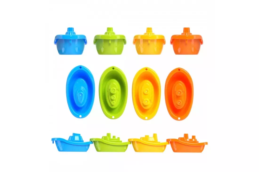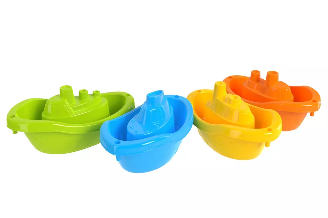 Набір барвистих корабликів для веселих ігор з водою та піском. Таку іграшку зручно взяти з собою у пісочницю чи на пляж. Це також необхідний атрибут для купання – з корабликами Ваш малюк буде приймати водні процедури із задоволенням. Спеціальна конструкція іграшки дозволяє кораблям добре триматися на воді та гарно плавати навіть на великих хвилях. На кормі корабликів є гачки, за допомогою яких можна з’єднати їх ланцюжком. Варіантів ігор з такою іграшкою безліч: складати пірамідку у різній послідовності кольорів, «швартувати» кораблики у порту, використовувати їх як формочки для піску чи інші, які точно придумають дітки самостійно. Такі ігри розвивають у малюків дрібну моторику, уяву та фантазію. А ще з корабликами можна також вивчати кольори та робити перші кроки у лічбі. У верхній частині корабликів є додаткові отвори для кращого висихання води після купання. У наборі 4 кораблики різних кольорів: прохолодний блакитний, яскравий жовтий, соковиті оранжевий та салатовий. Такі барви сподобаються дівчаткам і хлопчикам. Іграшка не має гострих країв, тому є безпечною для дітей від 1-го року. Виготовлені з якісного та міцного пластику.