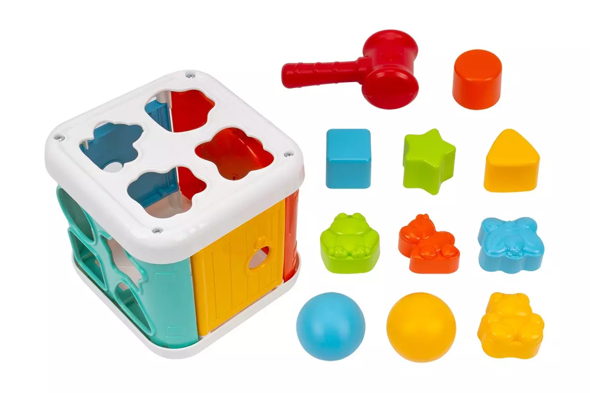 Ця розвиваюча дитяча іграшка ідеально підходить для раннього навчання та розвитку. Це чудовий спосіб для вашої дитини розважатися та навчатися одночасно. Куб має 6 сторін, різного кольору та форми. Дві сторони мають двері, які відкриваються в центр куба, відкриваючи геометричні форми та фігури тварин. Дитина може виймати фігурки і повертати їх у відповідні отвори. На іншій стороні є два отвори, куди дитина може забивати кульки за допомогою молотка. Дитина також може крутити шестерню на одній зі сторін. Іграшка куб "Розумний малюк ТехноК": Розвиває дрібну моторику Покращує координацію рук і очей Навчає розпізнавати колір, форму та розмір Заохочує творче мислення та уяву Грайтесь разом: Дайте малюкові кубик і заохочуйте його досліджувати різні сторони та фігурки. Допоможіть малюкові навчитися відкривати і закривати двері. Покажіть малюкові, як вставляти фігурки в отвори. Допоможіть малюкові навчитися забивати кульки в отвір. Пограйте з малюком в ігри з шестернею.