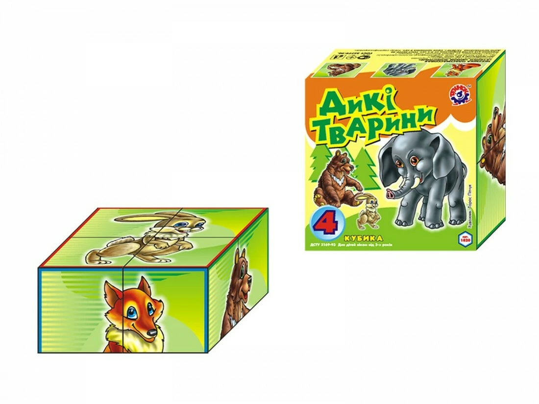Коли Ваш малюк підріс, у нього виникає потреба більш активно знайомитися з навколишнім світом. Завдання батьків - зробити це знайомство безпечним і захоплюючим для дитини і розвинути його творчі здібності. Кубики «Дикі тварини» познайомлять Вашого малюка зі світом диких тварин і допоможуть у розвитку його образної пам'яті і мислення. Беручи участь в грі, Ви можете розповісти йому, якими якостями володіє кожна тварина, щоб зацікавити і виробити розумну обережність при зустрічі з ними. Іграшка допоможе також розвинути у дитини художні здібності. Комплектація 4 кубика.