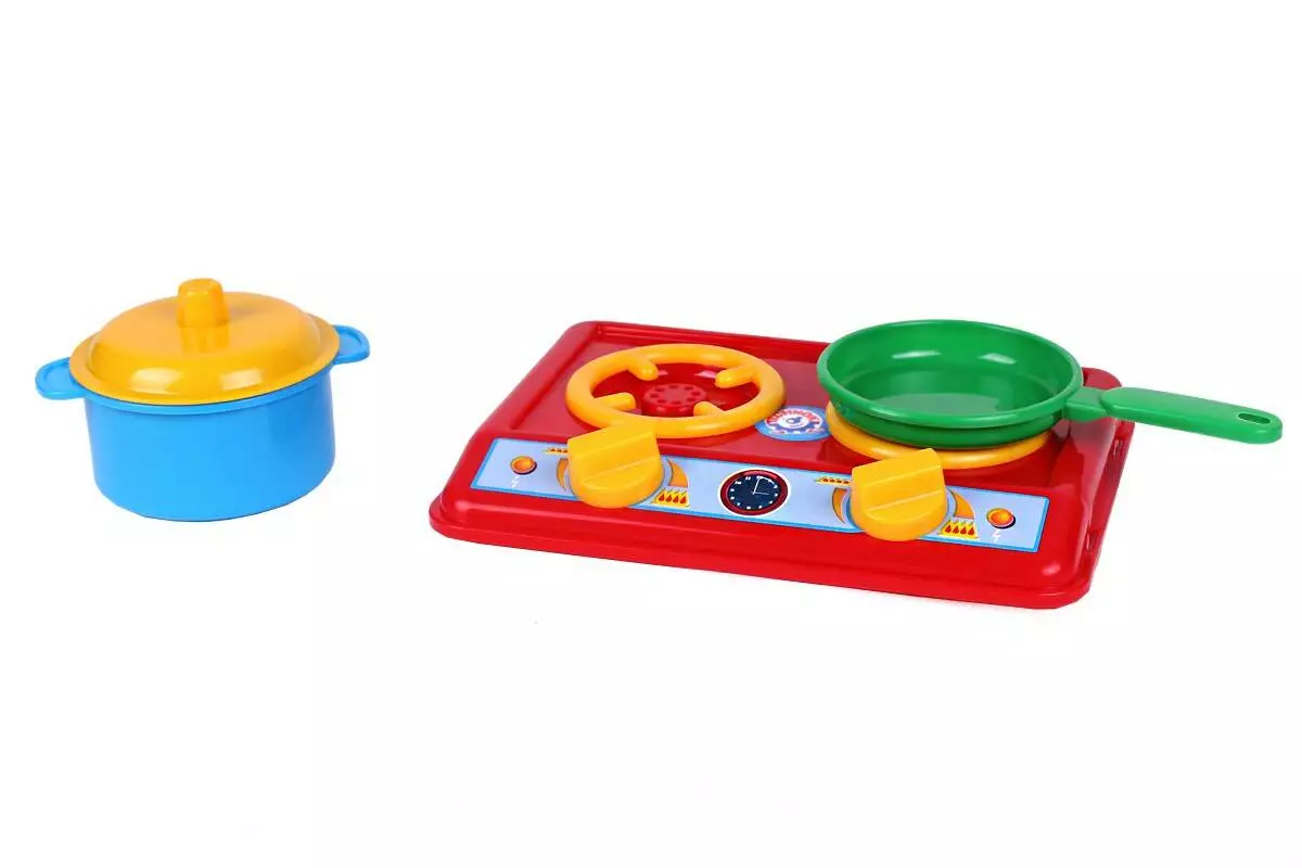 Як же навчитися готувати також смачно, як це робить матуся? Просто потрібно починати тренуватися вже в ранньому віці, пробуючи як і мама готувати різні страви. Щоб випадково не обпектися або випадково не впустити що-небудь малюк може використовувати іграшкову посудку. Дитяча кухня з плитою так схожа на справжню, тому принесе Вашій дитині багато хвилин цікавої гри. Дитина буде із задоволенням практикуватися в приготуванні різних страв, а може, навіть дізнається кілька кулінарних секретів. В ігровій формі Ваша дитина розвине дрібну моторику, координацію рухів, фантазію і образне мислення. Запросіть у гості подружок свою дитину і дочка зможе пригостити їх своїми шедеврами! Комплектація 1 плита, 1 сковорідка, 1 каструля, 1 кришка.