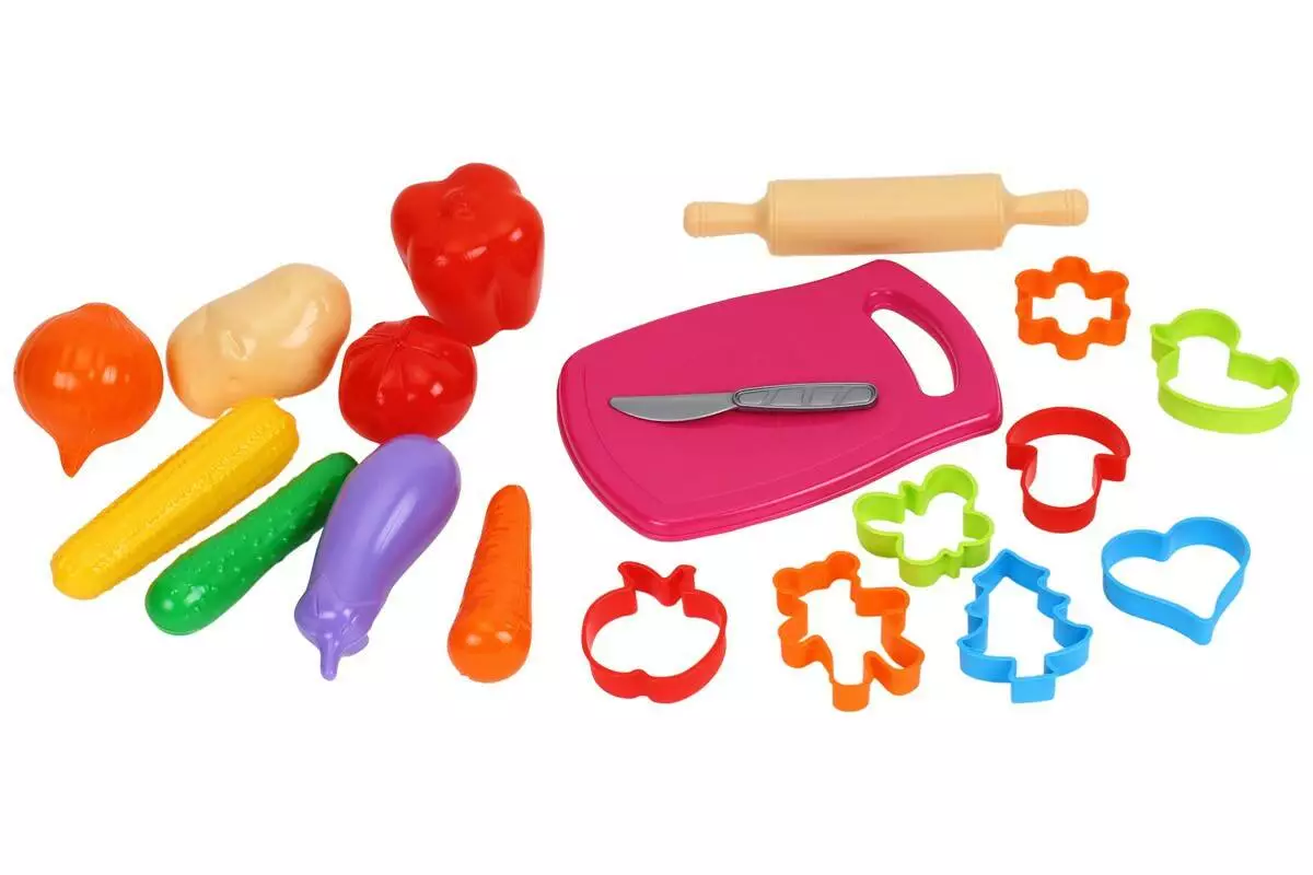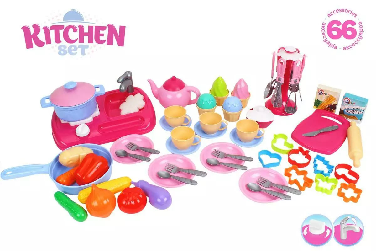 Мега набір посуду та кухонного приладдя для юних майстрів кулінарної справи. Ніжні кольори , неймовірно велика та цікава комплектація неодмінно привернуть увагу малюків до іграшки. Посуд та кухонне приладдя - це перші предмети побуту, з якими знайомиться малюк, адже зустрічає їх щодня. Саме тому іграшкові кухні такі цікаві для всіх дітей. Іграшка "Кухня з набором посуду ТехноК " - це все необхідне для приготування святкової вечері . На поверхні із газовою конфоркою можна приготувати смачні страви для іграшкових друзів. Для цього є велика каструля з кришкою, сковорідка ,різноманітні овочі та "коробочки" зі спагетті. Цікавий аксесуар на іграшковій кухні - міцна стійка з різним кухонним приладдям, що завжди буде під рукою. Черпак та шумівка для приготування борщів або бульйонів, лопатка для сокових стейків, а штовхачка для смачного картопляного пюре. Про десерти ми теж не забули - віночок неодмінно знадобиться для пишних бісквітів та пудингів. Ласунам сподобається набір для випікання . У ньому 8 кольорових форм , дощечка і качалка . Можна вирізати тістечка різної форми, вибравши, що Вам подобається. Тут є цікаві фігурки: ведмедик, метелик і качечка, квіточка, яблучко, грибочок, серце та ялинка. Звичайно ж до печива та "смачних кексів" потрібно заварити ароматний чай. Це можна зробити в милому рожевому чайнику, виготовленому методом видування. Округлі форми та плавні лінії чайника роблять його дуже схожим на справжній, додають іграшці краси та виховують гарний смак у дітей. Ергономічна ручка та подовжений носик роблять його зручним у використанні. А після святкового обіду треба помити посуд. Це можна зробити губкою в іграшковій мийці з краном і рухомою ручкою. Іграшкова кухня з набором посуду – це чудовий подарунок для всіх малюків. Такі сюжетно-рольові ігри добре розвивають моторику, фантазію та мислення дітей, допомагають сформувати навички приготування їжі та збирання, вивчити правила поведінки з технікою на кухні. Комплектація : стільниця з мийкою і краном, каструля з кришкою, сковорідка, ложка - 4 шт., виделка - 4 шт., ніж - 1 шт., тарілка - 4 шт., чашка - 4 шт., блюдце - 4 шт., формочки різних розмірів - 16 шт., огірок, морква, баклажан, помідор, картопля, цибуля, кукурудза, перець, коробочка - 2 шт., стійка, черпак, шумівка, вилка велика, лопатка, віночок, штовхачка, дошка, качалка, мочалка , цукорниця з кришкою, чайник з кришкою. Упаковка – яскрава коробка з ручкою (49,3 х 38 х 12 см). Для дітей віком від 3-х років. Вага 1180 г габаритні розміри 49.3 х 38 х 12 см Розміри упаковки 51.5 х 38 х 49 см