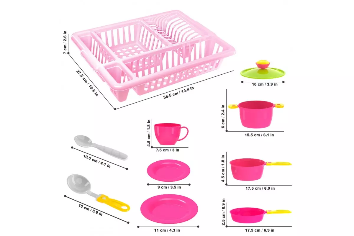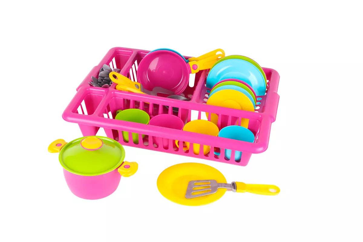 Відмінний подарунок для Вашої маленької господині - набір іграшкового посуду в сушінні. Яскраві кольори сподобаються малюкам, а різноманітність посуду викличе справжнє захоплення. У наборі є все, щоб маленька господарка реалізувала свої кулінарні задуми. Каструлька та сотейник для смачних борщів та корисних овочів, сковорідка для смаження. Шумівка, черпак, велика вилка та лопатка зроблять процес приготування максимально реалістичним. Також малюки зможуть запросити друзів на чаювання з різнокольоровими чашками на блюдечках. Після смачного обіду – треба помити посуд. А як цікаво розкласти вимитий посуд на сушінні - це так само як робить мама ) . Сюжетно-рольовіігри допоможуть Вашим дітям виявити гостинність, привчать дотримуватись порядку та бути акуратними. З іграшковим посудом діти вивчають основи сервірування столу та кулінарії. Кухонний набір із сушінням стане блискучим доповненням до іграшкової кухні та допоможе Вашій дочці відчути себе справжньою господаркою. Всі елементи набору виготовлені із міцного якісного пластику без запаху, безпечний для дітей. У наборі: сушіння, каструля з кришкою, сотейник, сковорода, лопатка, велика вилка, черпак, шумівка, губка, 4 тарілки з вилками та ножами, 4 чашки на блюдечках та ложечки. Вага 435 г габаритні розміри 38 ? 28 ? 14 см Розміри упаковки 53 ? 37 ? 36 см