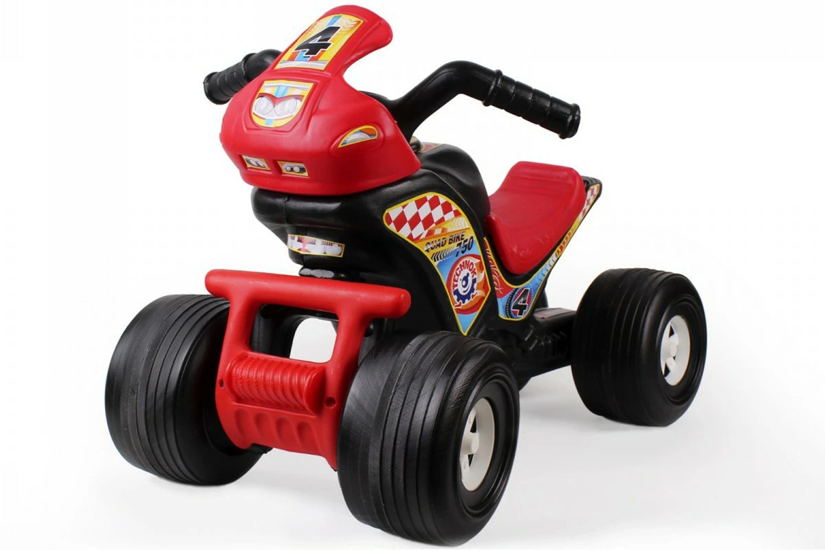 Довжина: 67 см Висота: 48 см Товщина: 42 см В сучасний час можна знайти машинки-каталки для дітей, які точно повторюють повнорозмірні автомобілі дорослого світу. БМВ, Ауді, Мерседес – всі ці марки широко відомі, але ними нікого не здивувати. А ось оригінальний квадроцикл точно заслуговує на увагу не тільки дітей, але і багатьох батьків. Як і в справжніх квадроциклах, щоб повернулися передні колеса необхідно повернути кермо каталки в необхідну сторону. Зручні широкі колеса роблять іграшку стійкою як на піску, так і на асфальті. Дитяча каталка «Квадроцикл» виготовлена з якісного пластику українського бренду «Технок», який давно заслужив довіру багатьох покупців.