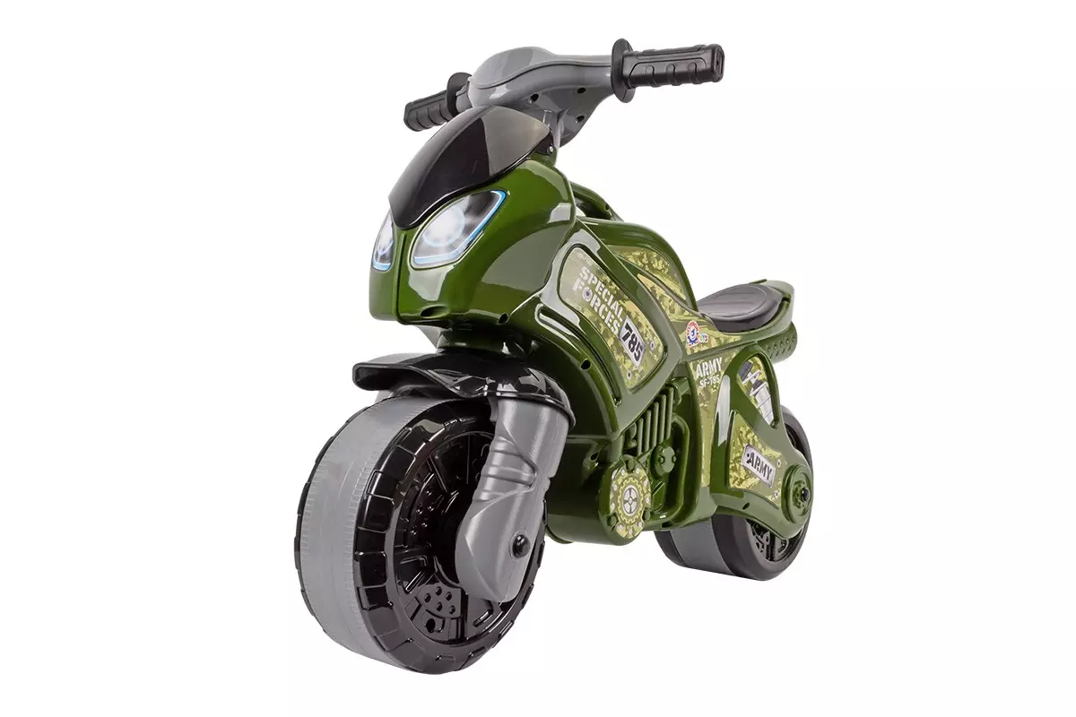 Зустрічайте трендовий байк в нових, актуальних кольорах. Тепер можна придбати ВІЙСЬКОВИЙ БАЙК для маленького героя, що захищає свою Вітчизну разом зі своїми батьками та старшими братами. Малюкам буде весело самостійно кататися на ньому, відчуваючи свою причетність до нашої армії. Широкі колеса мотоцикла зі вставкою забезпечують комфортну їзду в приміщенні та надворі. Також нашими інженерами розрахована оптимальна ширина керма, що дозволяє малечі майстерно керувати байком. Ручки на кермі виготовлені з м'якого та еластичного матеріалу. Якщо ж Ваша дитина втомилась – батькам буде легко переносити мотоцикл за спеціальну ручку, розміщену на "бензобаці". Вага мотоцикла дозволяє без зусиль мамі знести його по сходах, коли відсутня електроенергія і не працює ліфт. З новим байком можна влаштовувати не тільки перегони, а й баталії в дворах, а, отже, малюки будуть в захваті. Звичайно під пильним наглядом "військового командування", а, по сумісництву, батьків. Прогулянки на свіжому повітрі з нашим байком відмінний активний вид дозвілля, що розвиває і тренує різні види м’язів та вестибулярний апарат, як результат , покращує самопочуття та сон дитини. Для дітей від 2-ох років. Вага 2560 г Габаритні розміри 72?52?35 см Розміри упаковки 74х45х53 см