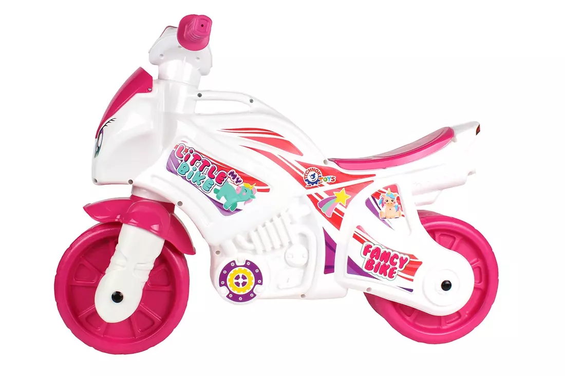 Поповнення у серії іграшкового автомототранспорту - "Мотоцикл ТехноК" у рожевих кольорах з електронікою. Цікавий сучасний дизайн, світлові та музичні ефекти - це байк для сучасних принцес. Оригінальною родзинкою мотоциклів є великі стійкі колеса, виготовлені методом видуву. Завдяки цьому вони є «тихішим» під час їзди. І тепер можна їздити на улюбленому мотоциклі навіть вдома, не заважаючи сусідам:) Оптимально підібрана ширина керма, з м’якими еластичними ручками, робить байк зручним під час керування. На корпусі мотоцикла передбачена спеціальна ручка, за яку зручно його переносити. Особливістю цієї іграшки є вбудовані музичні та світлові ефекти. Мотоцикл має дві кнопки, при натисканні на кожну з яких можна отримати різні варіанти звуку: від сигнального звуку типу «фа-фа» до потужного «ричання», як у реальних крутих байках. З таким мотоциклом ігри стануть ще яскравішими та різноманітнішими. Іграшка "Мотоцикл ТехноК" стане справжнім двоколісним другом для Ваших дівчаток! Виготовлений мотоцикл з міцного якісного пластику без запаху.