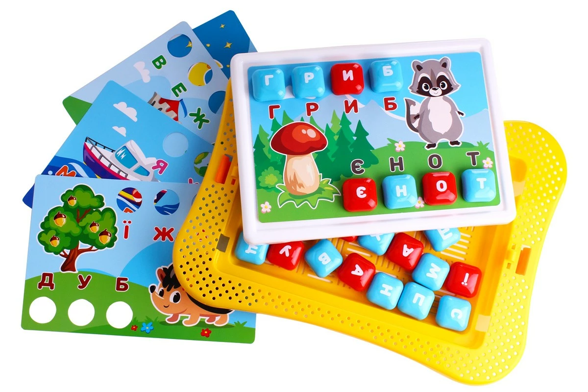 Як зацікавити дитину навчанням? Зробити це у формі гри! Для дітей, ба навіть, дорослих, це є найкращим способом освіти. Під час гри малюкам легше концентруватися на процесі навчання та засвоювати нову інформацію, будувати логічні зв'язки і запам'ятовувати складні поняття. Для вивчення букв та опанування азів читання пропонуємо Іграшку "Мозаїка ТехноК" арт.7877. У "Мозаїці ТехноК" є все для цікавого дозвілля та ефективного навчання. На велику яскраву валізку з ручкою кріпиться пластикове поле з отворами. В комплекті - 35 кнопок з нанесеними буквами: 11 голосних та 23 приголосних. Колір кнопок підібраний спеціально до букви - голосні на червоних, а приголосні на блакитних. Для складання слів є 5 двосторонніх кольорових шаблонів з цупкого паперу та отворами для кнопок. Під отворами підписані букви, що складаються у слова. Тематичні зображення на шаблонах – як підказка, що допоможе малюкам скоріше та краще запам'ятати слова та букви. Після опанування всіх слів на картинках, дітки також можуть складати самостійно нові слова відразу на полі. Після гри варто подбати про зберігання іграшки. Для цього у наборі є валізка, адже вона водночас слугує контейнером для шаблонів та кнопок мозаїки. За ручку валізку зручно переносити та брати з собою на урок. Іграшкова Мозаїка з кольоровими шаблонами та кнопками-буквами допоможе Вашим малюкам вивчити букви, почати читати, покращити мовлення, зорову пам'ять та збільшити словниковий запас. Читання приведе малюків у захопливий світ казок та пригодницьких книг. Для дітей від 3-х років. Пакування – яскрава коробка з "віконечком" та зручною ручкою для перенесення.
