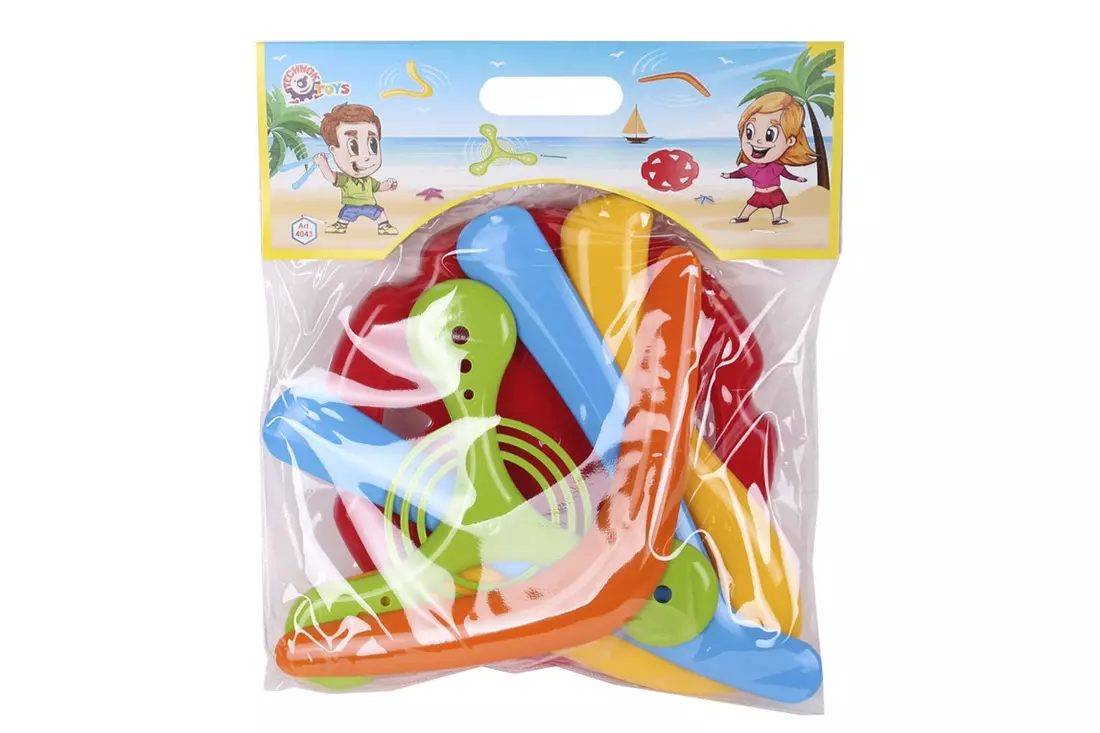 Комплект з п’яти літаючих фігур. Рекомендуємо для розваг всією сім’єю на природі. В комплекті два літаючих диски та три бумеранги. Літаючі диски з покращеними аеродинамічними властивостями можна застосовувати в таких класичних фрісбі-іграх, як «Фрістайл», «Дог-фрісбі», «Диск-гольф», а бумеранги дадуть змогу відчути себе справжнім мисливцем. Фігури розвивають фізичні навики гравців та дозволяють активно проводити час на Ваших прогулянках. Вага 190 г Габаритні розміри 28 х 24 х 4 см
