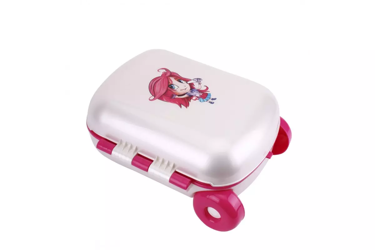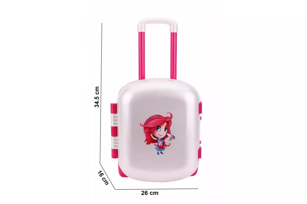 Мобільний професійний салон краси - мрія, яку можна реалізувати вже сьогодні. Неймовірний подарунок для кожної принцеси - іграшковий "Набір перукаря" у валізі, що виглядає немов справжня перлина. Він неодмінно стане у пригоді, коли потрібно зробити зачіску подружкам та матусі, накрутити волосся лялькам та, просто, припудрити носик. У наборі є різноманітні професійні інструменти на аксесуари. Для майстра-перукаря - пояс з кишеньками, щоб всі інструменти були під рукою. Не забруднити одяг клієнта допоможе спеціальна накидка на защіпці. У комплекті також є гребінець, щітка, плойка та шпильки у формі бантика для модної кучерявої зачіски. Дзеркальце з ручкою, пінцет та пудрениця будуть завжди під рукою для ідеального макіяжу. А щоб гарно просушити волосся та зробити легку укладку варто використати фен. Тепер у маленької модниці все буде все як справжній перукарні. Для ідеальної святкової зачіски у пригоді стануть 4 резинки для волосся та схема заплітання модних косичок. Такий набір принесе море радості маленьким модницям та зробить ігри дуже реалістичними. Розміри іграшкового приладдя оптимально розраховані для дівчаток. Також їх зручно взяти з собою на прогулянку чи у дитячий садок. Зберігати та переносити перукарські інструменти та аксесуари можна у маневровій валізі з регульованою ручкою. З набором перукаря від ТехноК кожна дівчинка відчує себе справжньою принцесою! Сюжетно-рольові ігри розвивають дитячу уяву, фантазію, мислення та дрібну моторику. Знайомлять дітей з основами гігієни та щоденно догляду. Такі ігри покращують комунікативні та соціальні навички. Іграшка виготовлена з міцного якісного пластику, без запаху. Комплектація: валіза, фен, плойка, гребінець, щітка, дзеркальце, 2 заколки, пудрениця, пінцет, ножиці, накидка, пояс, 4 резинки для волосся, інструкція для заплітання. Для дітей від 3-х років. Пакування – яскравий картонний пояс.