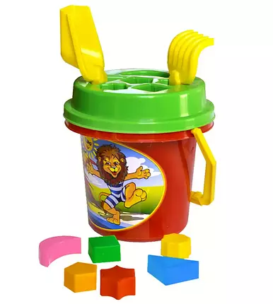 Вага 250 г Розміри 27.5 ? 20 ? 17 см Набір для гри в піску та саду. Яскраве відерко з веселим малюнком та зручною ручкою, лопатка, грабельки, 6 формочок та кришка-логіка. Малюк розкладає формочки у відповідні отвори кришки. У кришці 2 додаткові отвори для зручного носіння грабельок та лопатки.
