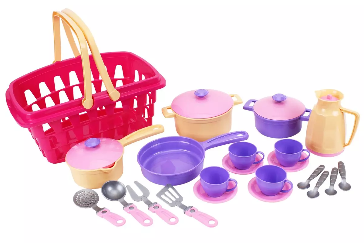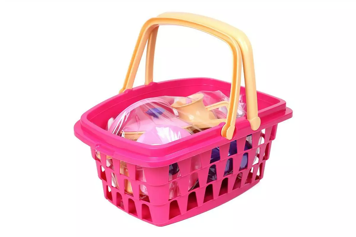 Кухонний набір у місткій корзині – справжня знахідка для маленької господині. Яскраві кольори та різноманіття посуду неодмінно привернуть увагу малечі та батьків. У наборі є все необхідне для приготування смачних страв та зустрічі гостей. Великі каструлі з кришками, сотейник з кришкою та сковорідка для втілення різноманітних кулінарних задумів. Шумівка, черпак та лопатка зроблять процес приготування максимально реалістичним. А щоб порадувати гостей запашною кавою – кавник з кришкою, 4 горнятка з ложечками на блюдечках. Всі іграшки розміщуються у великій корзині з двома ручками. Так посуд можна брати з собою на прогулянку і влаштувати справжній пікнік для друзів. Вдома ж іграшки зручно зібрати у кошичок та зберігати у дитячій кімнаті. Кухонний набір у кошичку стане улюбленою іграшкою маленької господині. Він чудово доповнить ігрову кухню Вашої малечі. Господиньки з радістю готуватимуть смачні борщі, соковиті стейки та інші кулінарні шедеври. Такі сюжетно-рольові ігри допоможуть Вашим діткам проявити гостинність, привчать дотримуватись порядку та бути акуратними. З іграшковим посудом діти вивчають основи сервірування столу та кулінарії. Ігри розвивають координацію, уяву та мислення. Увага, іграшка тільки для дітей. Ми переживаємо, що батьки теж високо оцінять розміри та зручність корзини та швидко знайдуть їй застосування у господарстві. Корзину зручно брати на прогулянку у парк чи за грибочками у ліс. Всі елементи набору виготовлені з міцного якісного пластику без запаху, безпечні для дітей. У наборі: корзина, 2 каструлі з кришками, сотейник з кришкою, сковорідка, лопатка, велика виделка, черпак, шумівка, кавник з кришкою, 4 чашки з блюдечками та ложечками.