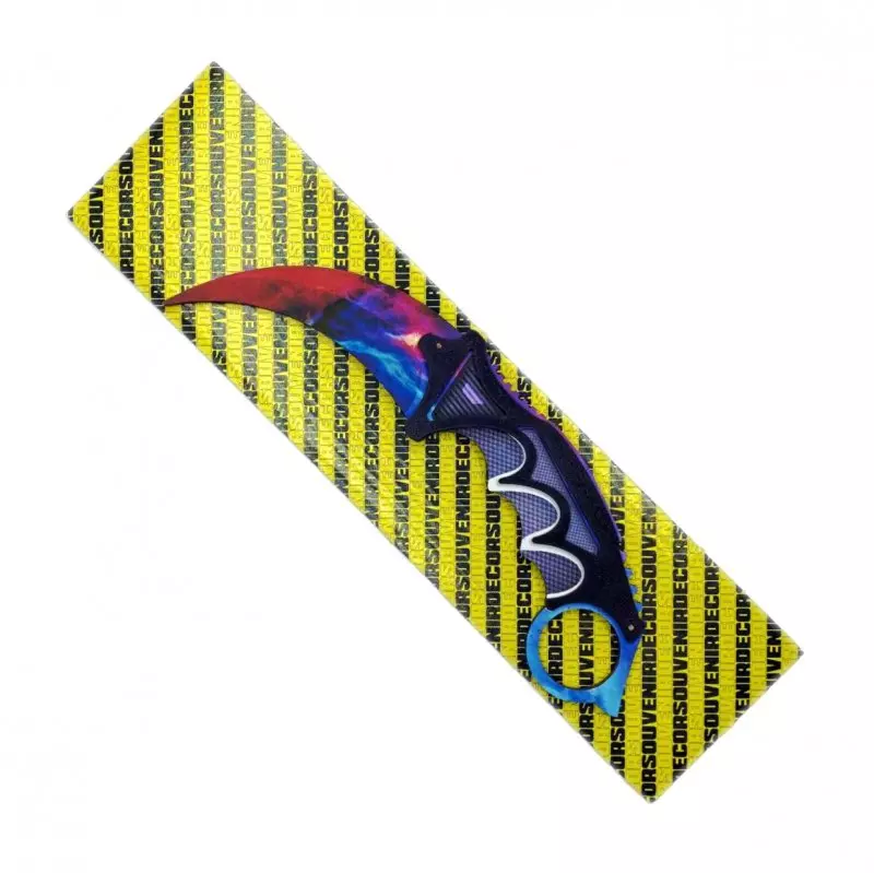 Ніж дерев'яний "Керамбіт" Туман виконаний з фанери, пофарбований акриловими фарбами та розкритий акриловим лаком. Довжина ножа – 26 см.