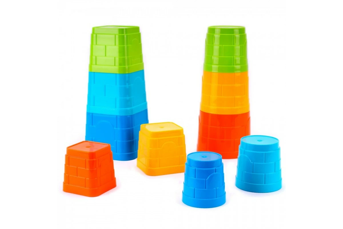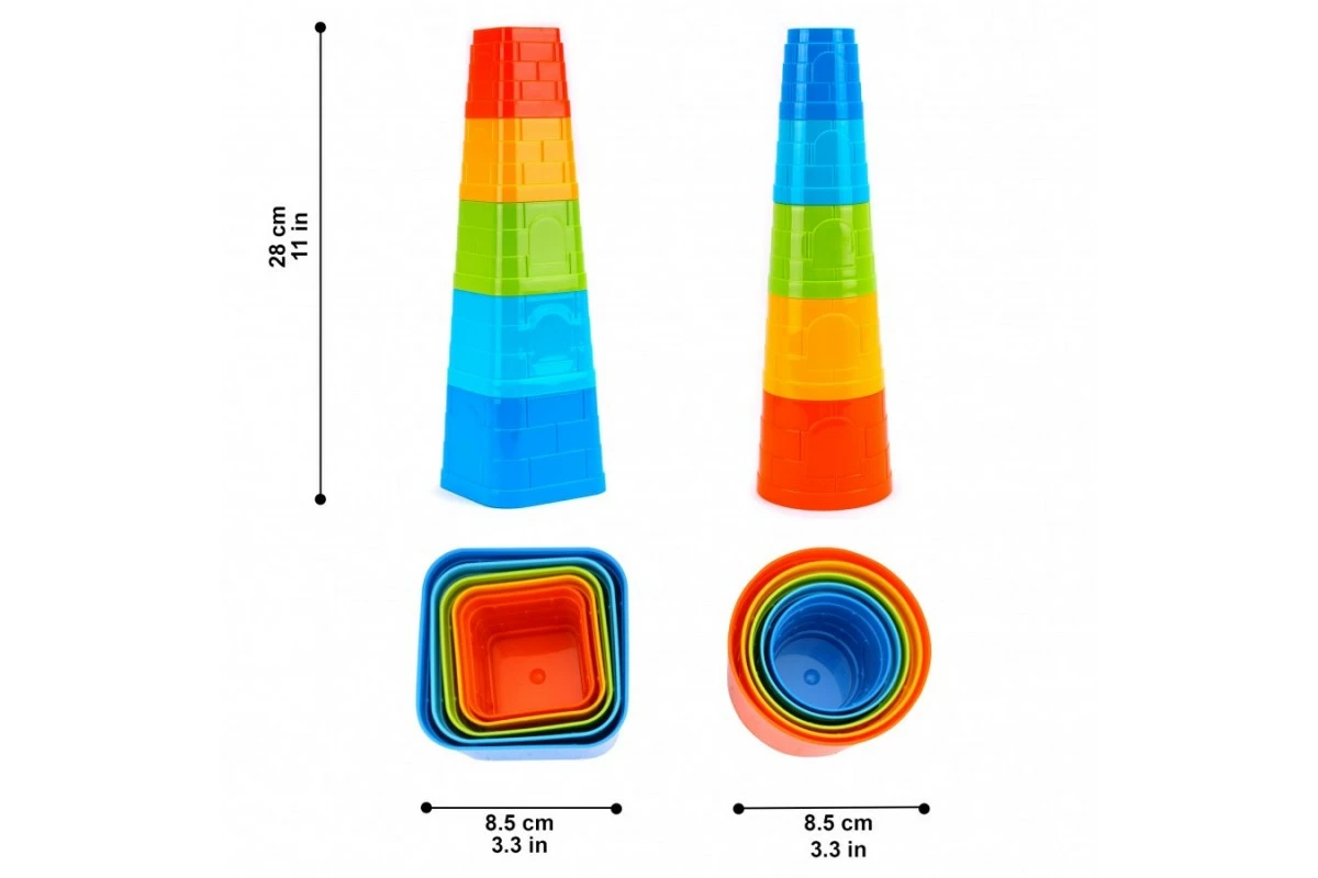 Набір для ванної«Пірамідка ТехноК» це цікава морська пірамідка та лійка у формі дельфінчика. Такий набір принесе море радості Вашим малюкам під час купання, та перетворить його у веселу захопливу гру. Пірамідка складається з семи елементів різного кольору та розміру. При цьому кожен елемент – ще й цікавий морський житель: дельфін, морський котик, краб, черепашка, морська зірка та рибки. Всі елементи можна зібрати у пірамідку від більшого до меншого, або вкласти один в один. Розміри кожної фігури підібрані пропорційно - найбільша «акула», а найменша «морська зірка». Кольори – як веселка, від червоного до фіолетового. На верхній фігурі «морська зірка» є млинок, що обертається при наливанні водички. Через різні ситечках на дні кожної формочки водичка «втече з пірамідки». І так можна гратися безліч разів. Елементи пірамідки такождобре використовувати як пасочки, а ситечко на дні – як штамп на піску. Лійка- необхідний атрибут для ігор з водичкою у ванні, на морі та у пісочниці теплими сонячними днями. Розмір лійки спеціально розрахований для маленької дитячої руки. Набрати воду легко, оскільки отвір розташований зверху та не перекривається ручкою. Та окрім розваг, ще й навчання. Збудувати та зруйнувати піраміду, вивчити кольори, розміри, форми, познайомитись з морськими жителями, та зробити перші кроки у лічбі. Лити водичку на млинок та спостерігати, як він обертається – ось це вже справжня фізика. А ще безліч ідей, які придумає Ваш малюк. Адже така іграшка добре розвиває дрібну моторику, координацію, пам'ять, логіку та уяву. Набір зручно взяти з собою на прогулянку, вона не займе багато місця у візочку або сумці. Іграшка для дітей від 1 року. Пакування: сітка з кольоровою картонною етикеткою. На Ваш вибір два кольорові рішення - з лійкою рожевого або блакитного кольору.
