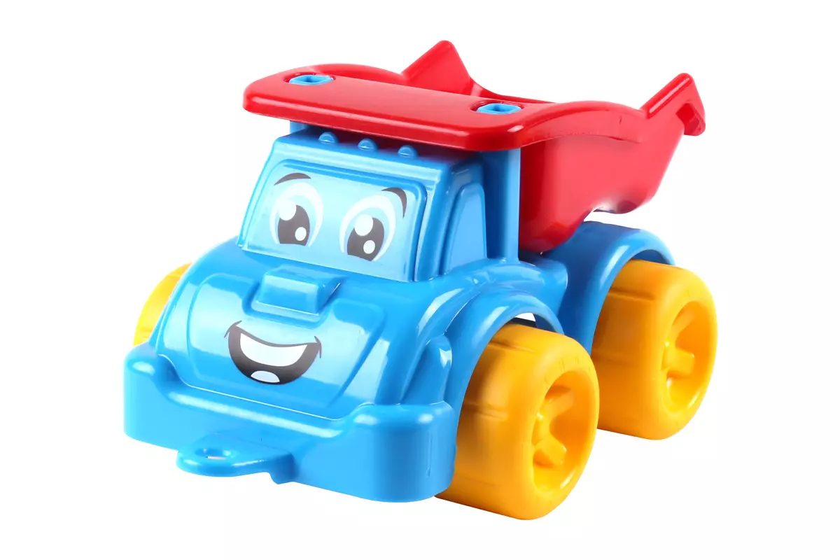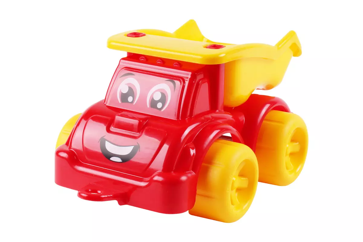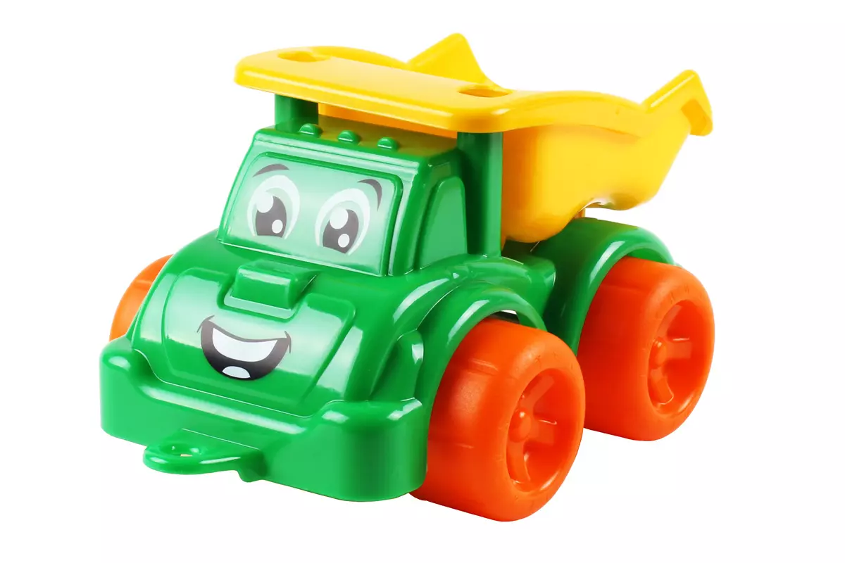 Іграшковий самоскид Максик 0953 доступний до замовлення в декількох варіантах колірного оформлення: синій, червоний і зелений. Міцна, середніх розмірів машинка з намальованими на лобовому склі завзятими очками і усміхненим ротиком замість радіатора має внизу колечко кріплення під мотузку, яку можна нав'язати і котити іграшку за собою на прогулянці по вулиці. А в вантажний кузов можна додатково покласти що-небудь не дуже велике, але вкрай важливе для малюка, звільнивши руки. Вага 135 г габаритні розміри 21.5 ? 13.5 ? 10 см Розміри упаковки 39 ? 39 ? 29 см