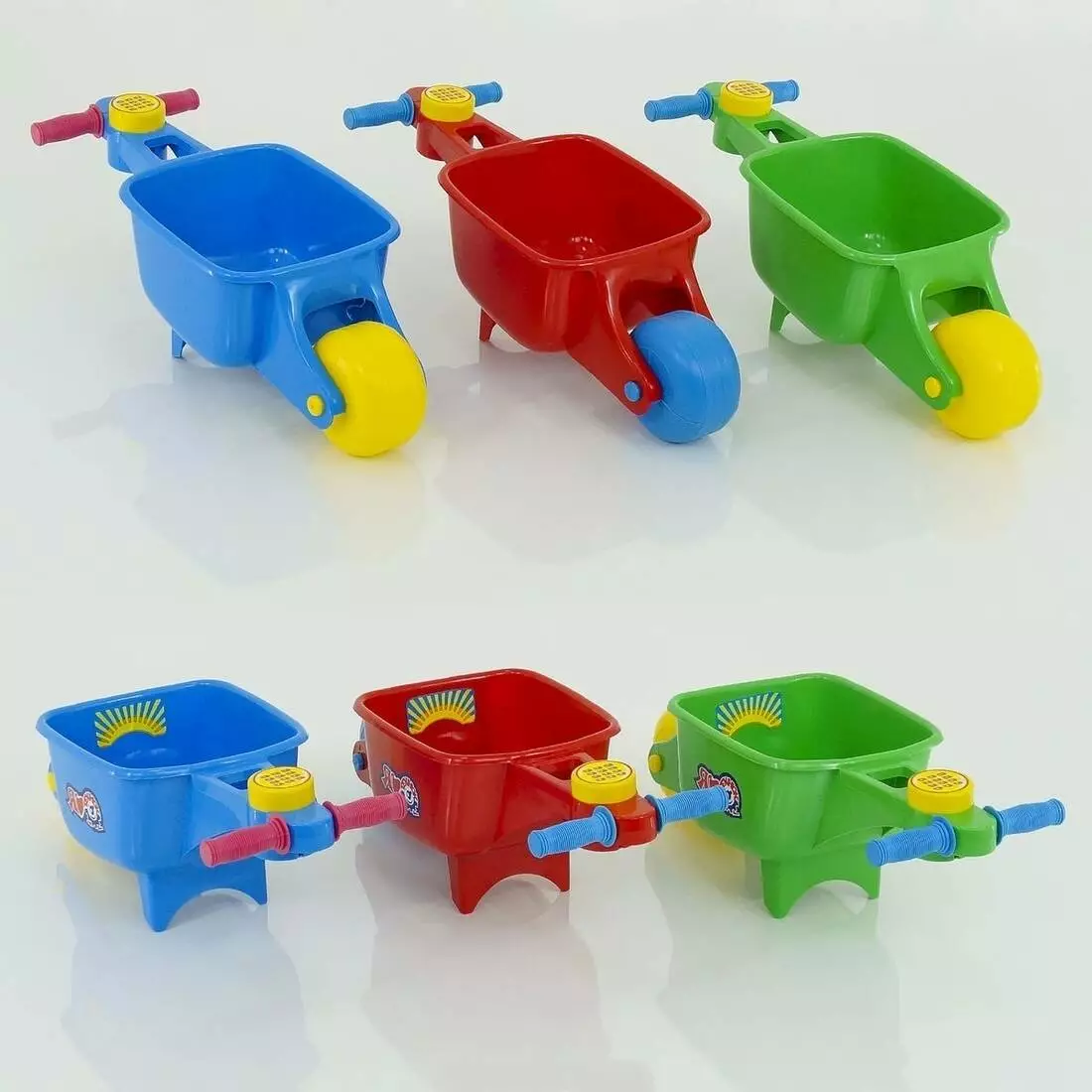 Іграшкова тачка маленька ТМ Техноком 1226 міцна і стійка завдяки широкому колесу і міцної опори під ручкою. Сигнальний клаксон зробить гру ще веселіше і гучніше. Тепер аварія не загрожує - малюк повідомить про своє наближення гучними звуками! Що з нею можна робити? Возити - що завгодно або навіть кого небудь, наприклад кошеня або цуценя! А також пісок на пляжі до місця будівництва замку або воду для розчину. Зберігати - наприклад іграшки. І знову возити - ті ж іграшки, з кімнати в кімнату або на вулицю, з тачкою швидше і зручніше.