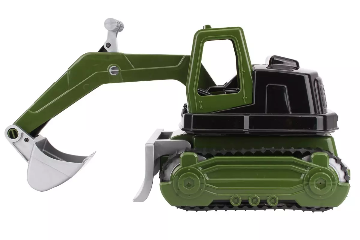 Неймовірний світ будівельної техніки захоплює дітей та дорослих. Великі потужні машини заворожують своєю роботою. Вони перетворюють непрохідні хащі та болота в автомагістралі, прокладають тунелі під морями, в пустелях будують злітні смуги для авіалайнерів завтрашнього дня. Тому важко уявити іграшковий автопарк без вантажівок, тракторів, грейдерів та бульдозерів. Великий потужний трактор на гусеничному ходу стане перлиною будь-якого автопарку іграшкової спецтехніки. Захисні кольори хакі приховають техніку під час робіт у небезпечній зоні. Цікавий функціонал з рухомим ковшем, гусеницями та поворотною платформою приверне увагу дітвори. трактори добротні, виготовлені з міцної пластмаси, надійні та водночас мобільні; cтійкі «гусеничні» колеса добре прокручуються, тож іграшка рухається доволі швидко; ківш іграшкових тракторів регулюється за допомогою спеціального важеля. У піднятому положенні стріла з ковшем фіксується. Гратися цими тракторами дитина зможе як вдома, так і надворі, в пісочниці, у дворі, в дитсадку чи в парку. Для дітей від 3-х років. Пакування - картонна етикетка. Вес 537 г Габаритные размеры 41.5 х 21 х 19.5 см Размеры упаковки 59 х 49 х 27.5 см