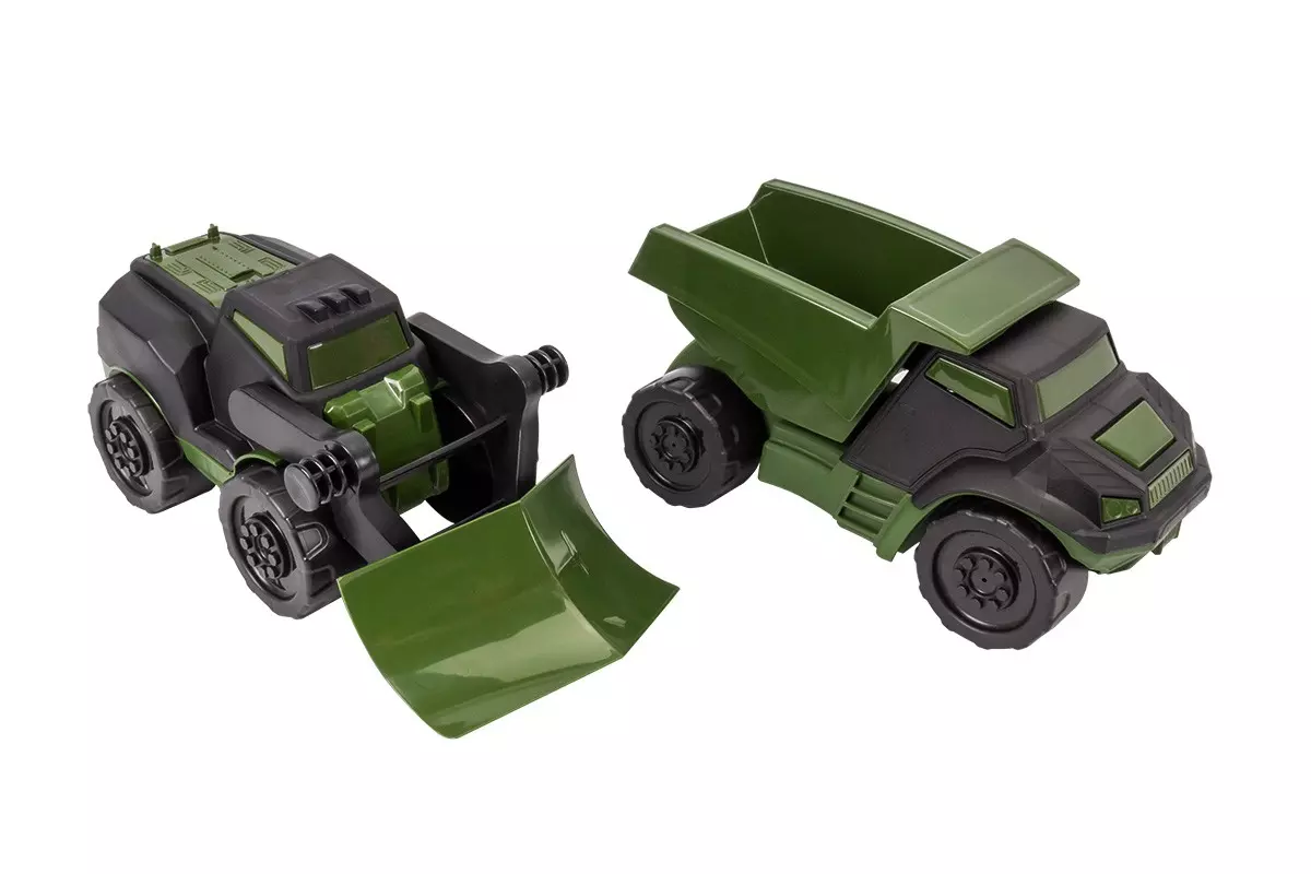 Комплект сучасної будівельної техніки для маленького захисника складається з самоскида і грейдера. Дитина може використовувати грейдер для рівняння доріг та розгрібання завалів після обстрілів, а іграшковий самоскид це мініатюрна версія вантажівки з відкидним кузовом. В парі - це комплект техніки для створення фортифікаційних споруд та відновлення інфраструктури після обстрілів. На жаль, наші діти знають про це не з підручників історії, а з розповідей близьких та щоденних новин. В дизайні ми використаликольори "мілітарі", що забезпечує реалістичний дизайн та високу зносостійкість. Ідеальний комплект в пісочницю, на дитячий майданчик чи просто для гри вдома. Вага 418 г Габаритні розміри 27.5х21.5х12.8 см Розміри упаковки 50.5х26.3х35.9 см