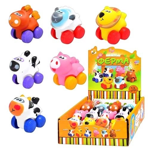 Іграшкова тварина на колесах 9552 (48шт/2) "Ферма", 4 види, бокс