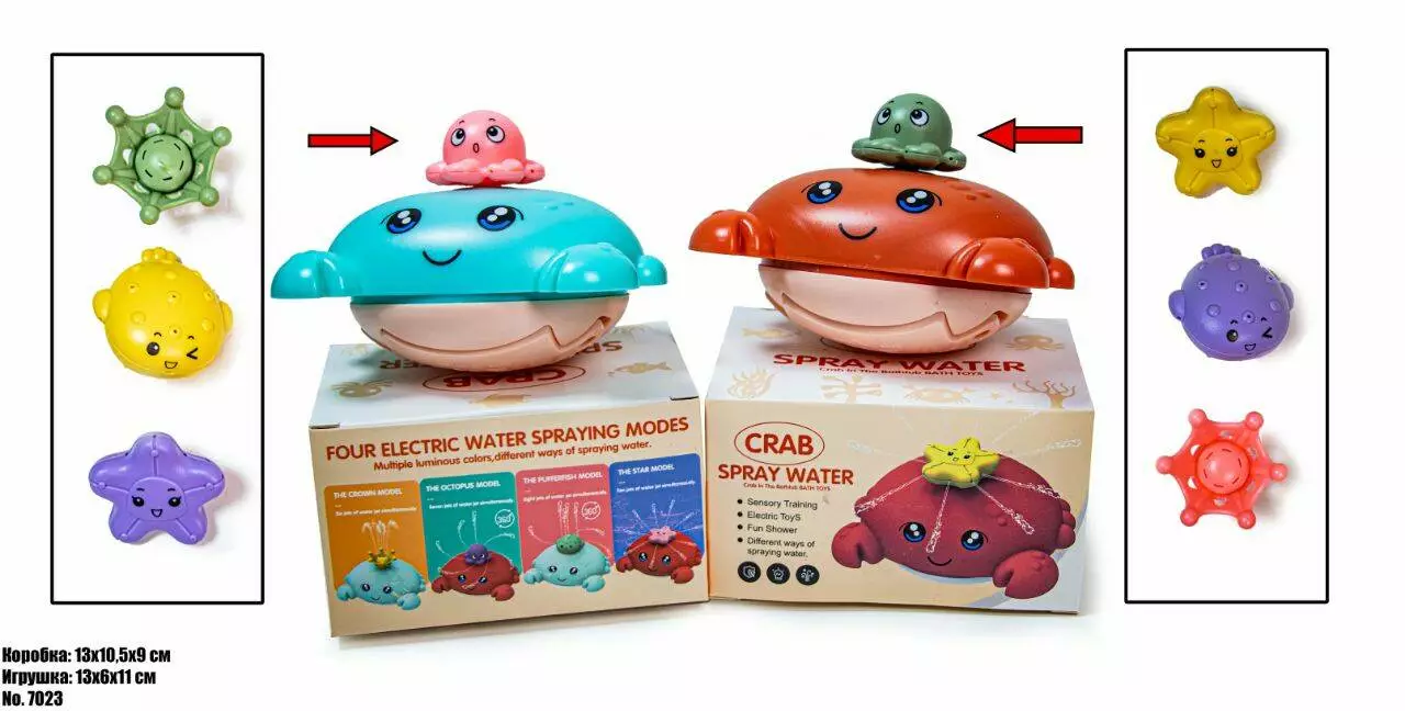 <p><em><strong>Игрушка для Ванны Краб 7023</strong></em></p><br /> <p>Креативная игрушка для ванны с распылителем воды и светящиемися корпусом.С помощью этой веселой игрушки, дети больше не будут плакать, и начнут любить принимать ванну, игрушка создаст интересную среду для купания ребёнка.<br /><br /> Насос с питанием от батареи циркулирует воду во время игры в ванне и создаёт фонтан .<br /><br /> Работает от 3-х батарек AAA ( не входят в комплект)</p><br />